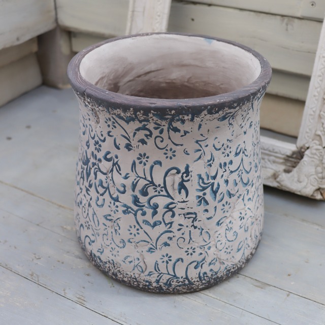 アンプリメフルールポットL|アンティーク調ブルー模様が映えるナチュラルガーデン向けセメント鉢