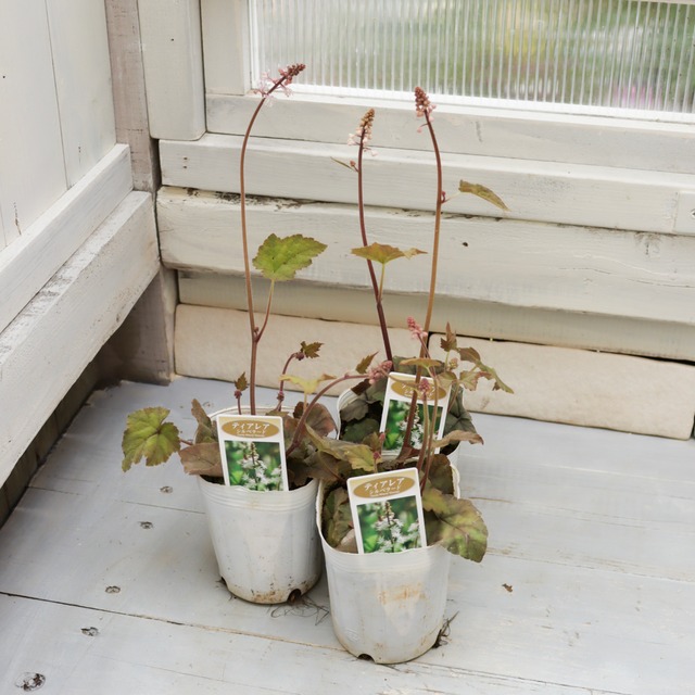 【ティアレア・シルベラート について】 落ち着いた銅色の葉に、 繊細な葉脈。 季節とともに色合いが深まり、 花のない時期も静かな存在感を放ちます。 春になると、 すっと伸びた花茎の先に 小さな白花をふわりと咲かせます。 派手さはありませんが、 “通好み”の美しさを持つ多年草です。 <基本情報> ・植物名:ティアレア ・品種名:シルベラート ・分類:耐寒性多年草 ・草丈:15〜30cm前後(開花時は花茎が伸びます) ・開花期:春 ・用途:鉢植え、プランター、寄せ植え、シェードガーデン <育て方のポイント> 水やり: 表土が乾いたらたっぷり与えてください。乾燥しすぎないよう注意します。 置き場所: 半日陰〜明るい日陰を好みます。強い直射日光は葉焼けの原因になるため避けてください。 花がら摘み: 咲き終わった花茎は株元から切り取ると、株の充実につながります。 肥料: 春と秋に緩効性肥料を少量与える程度で十分です。 <楽しみ方・植え合わせの提案> シルバーや銅葉系のリーフ、 ラミウムやヒューケラなどと相性が良く、 落ち着いた大人の寄せ植えに仕上がります。 ビオラや小花と合わせると、 リーフの深みがより引き立ちます。 単植でも 葉色の変化をゆっくり楽しめる植物です。 <Green heartからのひとこと> 目立ちすぎず、 けれど確実に全体の質を上げてくれる存在。 寄せ植えの“奥行き”を作りたいときに ぜひ取り入れていただきたい一株です。 静かに、美しく育ちます。 --- その他:苗の性質上、多少の個体差があります。 色合いや枝ぶりにはばらつきがございます。 状態の良い苗を選んで丁寧にお届けいたします。 【発送について】 ・丁寧に梱包し、発送いたします ・植物のため、個体差がありますのでご了承ください ご不明点がございましたら、お気軽にお問い合わせください。