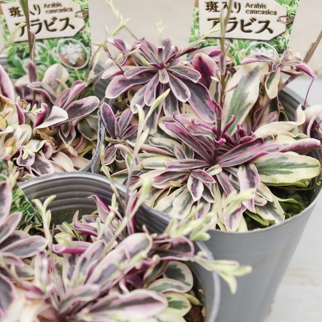 【斑入りアラビス について】 やわらかなクリーム色に、 ほんのりピンクの縁取り。 花がない時期も 葉色だけで十分に美しく、 寄せ植えを上品にまとめてくれる存在です。 春には、 すっと伸びた花茎の先に 可憐な白花を咲かせます。 寒さに強く、 早春の庭やベランダを 軽やかに彩ってくれる優秀な多年草です。 <基本情報> ・植物名:アラビス ・品種名:斑入りアラビス ・分類:耐寒性多年草 ・草丈:10〜20cm前後(開花時は花茎が伸びます) ・開花期:春 ・用途:鉢植え、プランター、寄せ植え、グラウンドカバー <育て方のポイント> 水やり: 土の表面が乾いたらたっぷりと与えてください。過湿は避け、やや乾き気味を好みます。 置き場所: 日当たりと風通しの良い屋外でお楽しみください。 花がら摘み: 咲き終わった花は早めに取り除くと株が弱りにくくなります。 肥料: 春と秋に緩効性肥料を少量与えると、株が充実します。 <楽しみ方・植え合わせの提案> 斑入りの葉色は、 シルバーリーフや くすみカラーの花と相性抜群です。 ビオラやジュリアン、 オステオスペルマムなどと合わせると、 やわらかく上品な雰囲気に仕上がります。 単植でも ふんわり広がる葉姿が美しく、 ナチュラルな鉢植えとして楽しめます。 <Green heartからのひとこと> 花が咲く前も、 咲いている間も、 そして花後も美しい。 寄せ植えの“土台の完成度”を 一段上げてくれる植物です。 春のはじまりに、 安心して選べる一株です。 --- その他:苗の性質上、多少の個体差があります。 色合いや枝ぶりにはばらつきがございます。 状態の良い苗を選んで丁寧にお届けいたします。 【発送について】 ・丁寧に梱包し、発送いたします ・植物のため、個体差がありますのでご了承ください ご不明点がございましたら、お気軽にお問い合わせください。