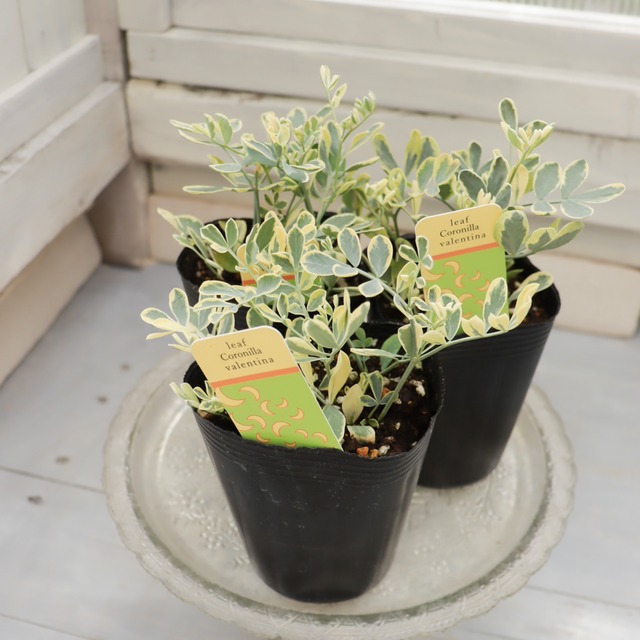 【商品名:コロニラ・バレンティア バリエガータ について】 <基本情報> 斑入りの葉がやさしく明るい印象の、コロニラ・バレンティア バリエガータ。 こちらは1ポットに5本立ちで、生育バランスがよく、 ギャザリングや寄せ植えが形よく仕上がる良質苗です。 生産は、苗質に定評のあるハルグリンさん。 茎の立ち上がりや葉の付きが美しく、扱いやすさを感じていただける株です。 <育て方のポイント> ・置き場所:日当たりと風通しの良い屋外向き ・水やり:土の表面が乾いたらたっぷり ・過湿を避け、やや乾き気味に管理すると株姿がきれいに保てます <楽しみ方・植え合わせの提案> 1ポットでボリュームが出るため、 ギャザリングのベースリーフとして非常に使いやすい品種です。 小花や明るい花色と合わせると、 斑入り葉が引き立ち、軽やかな印象の寄せ植えに仕上がります。 <Green heartからのひとこと> 同じコロニラでも、苗質によって仕上がりは大きく変わります。 こちらは、「形が決まりやすい」ことを大切に選んだ一株。 作品づくりをされる方にも、ぜひ使っていただきたい苗です。 --- その他:苗の性質上、多少の個体差があります。 色合いや枝ぶりにはばらつきがございます。 状態の良い苗を選んで丁寧にお届けいたします。 【発送について】 ・丁寧に梱包し、発送いたします ・植物のため、個体差がありますのでご了承ください ご不明点がございましたら、お気軽にお問い合わせください。