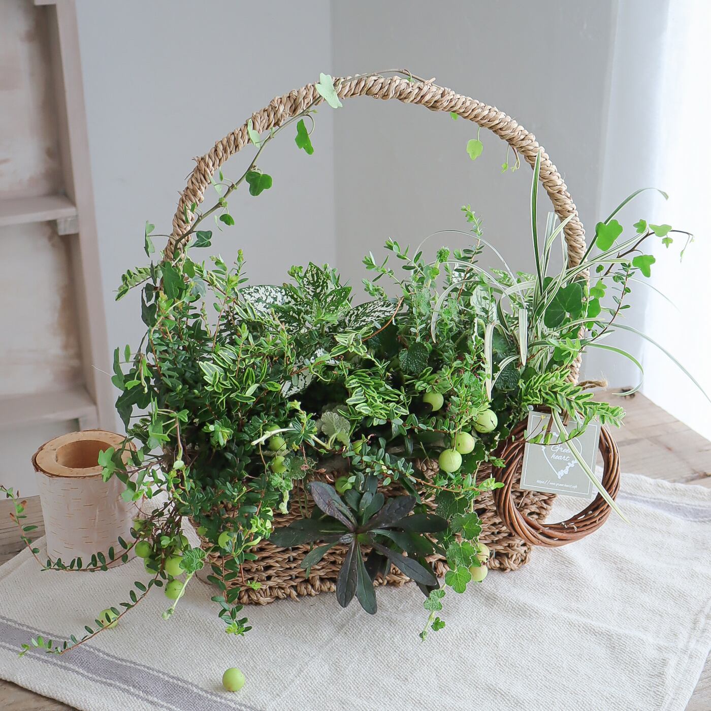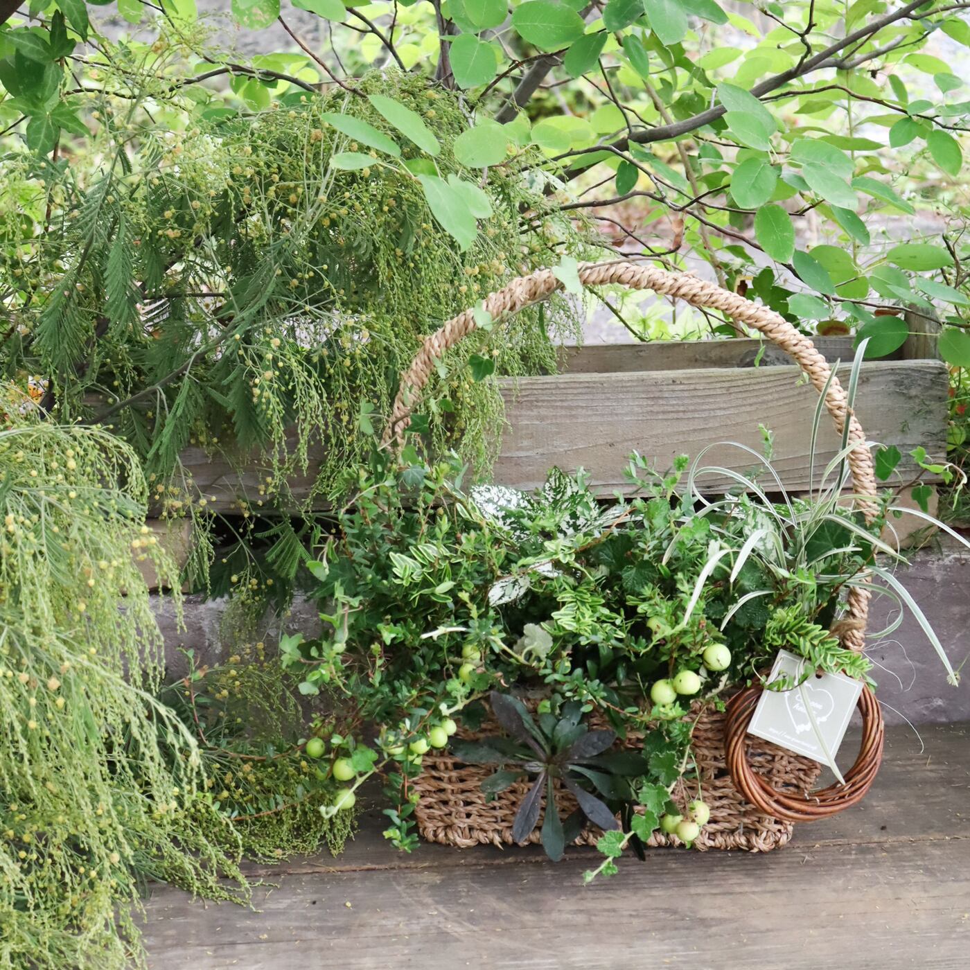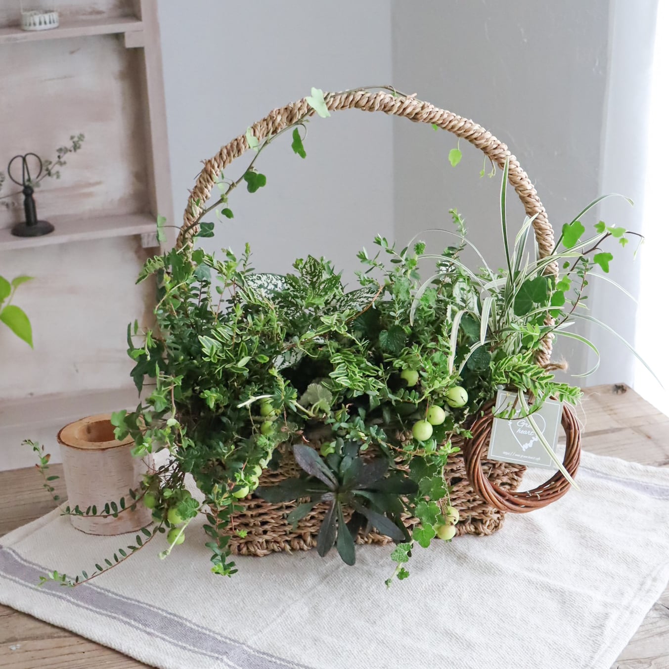 クランベリーとグリーンリーフのフレッシュ&爽やか|サラダみたいな♪-バスケットアレンジ(ハンギング可能)
