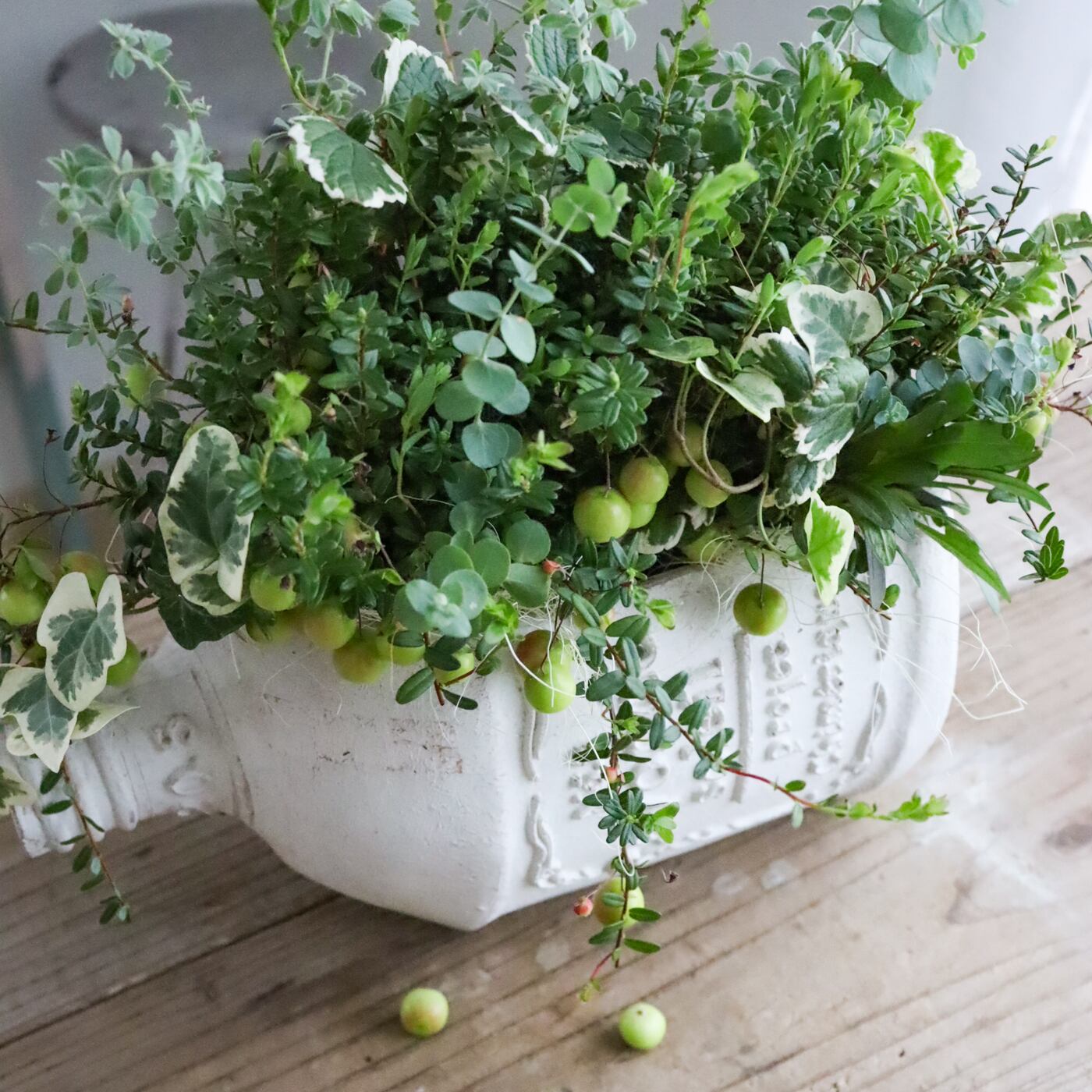 シュワっと弾ける✽ .*リフレッシュアレンジ クランベリーとグリーンの爽やか寄せ植え*ボトル型ポット*