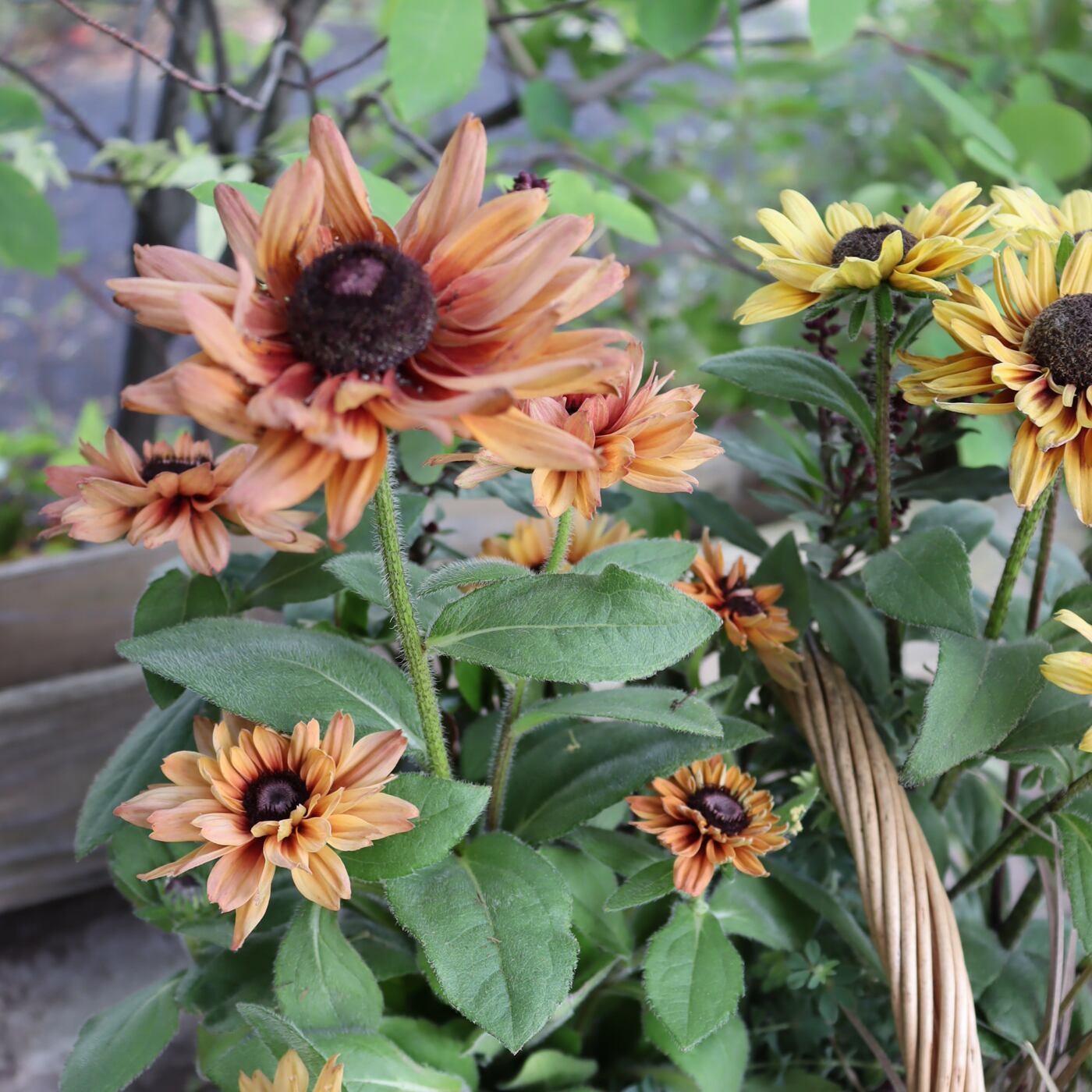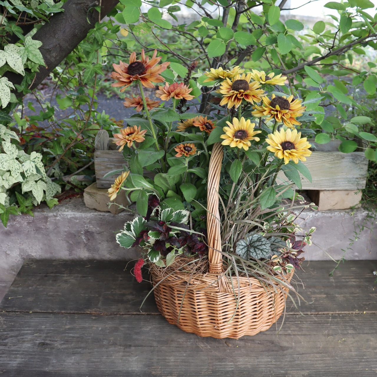 バスケットに咲く夏の風景 〜ルドベキア・キャラメルのナチュラル寄せ植え〜