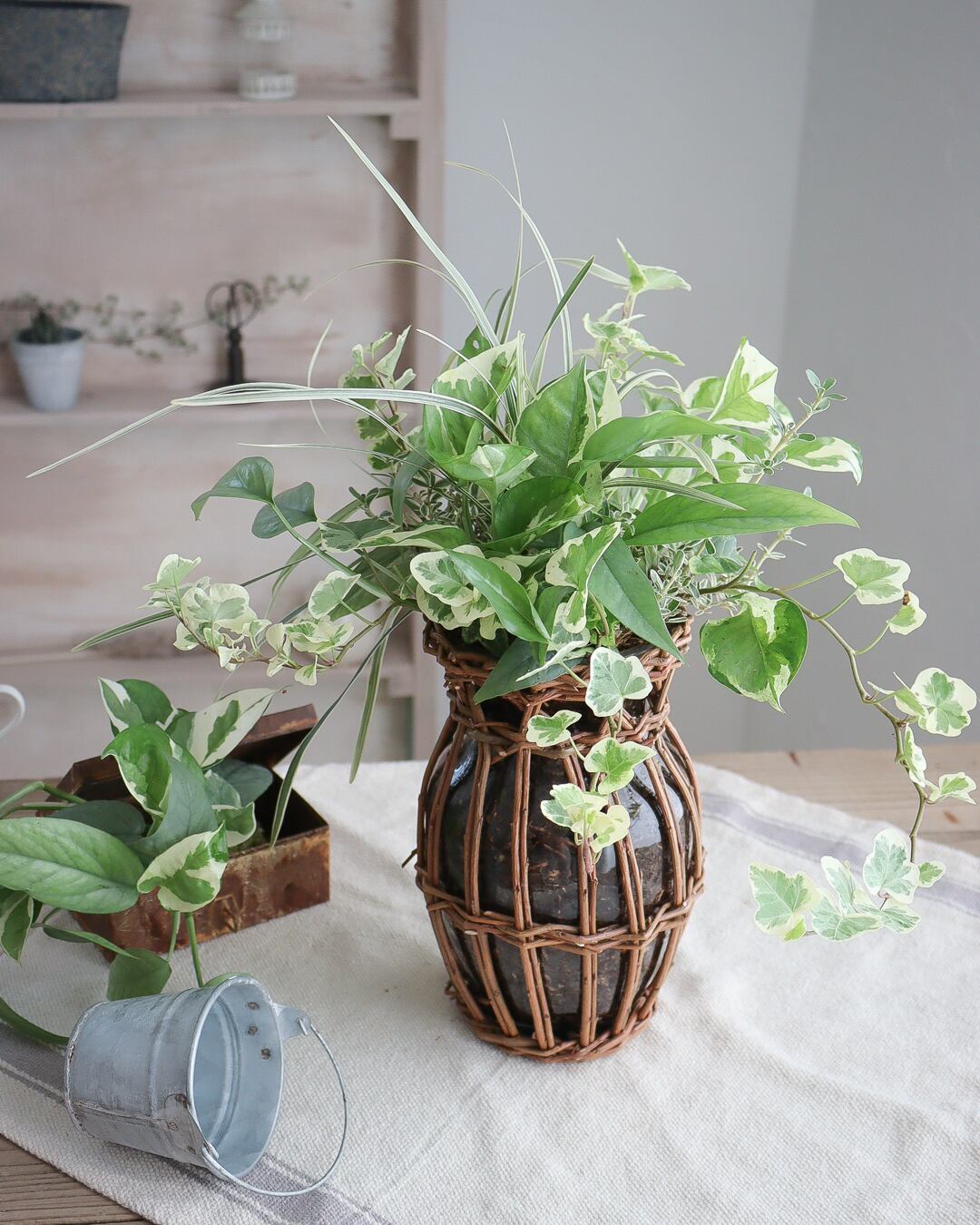 受け皿不要で飾りやすい・グラスバスケットの観葉植物ブーケ植え(インテリアグリーン)-#3