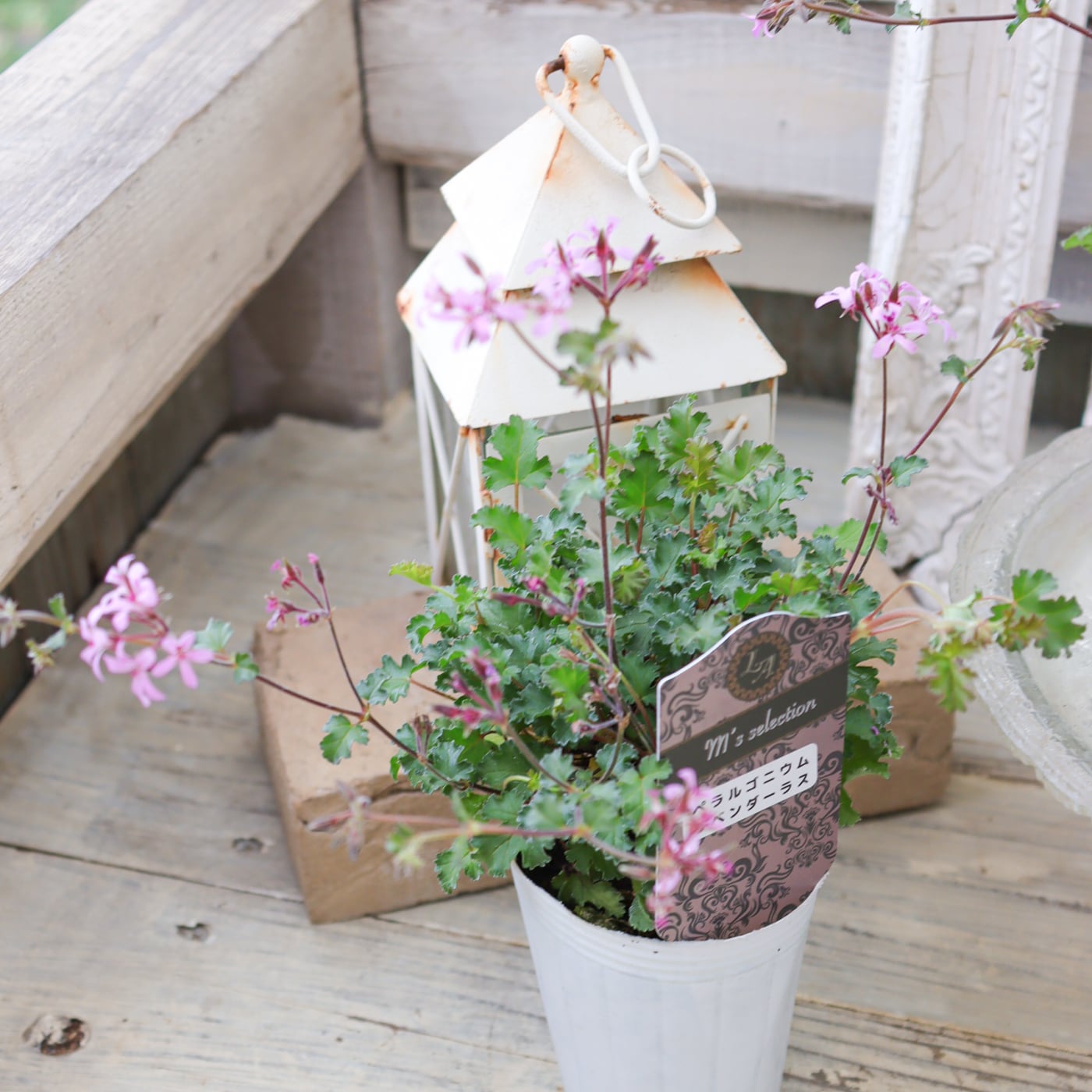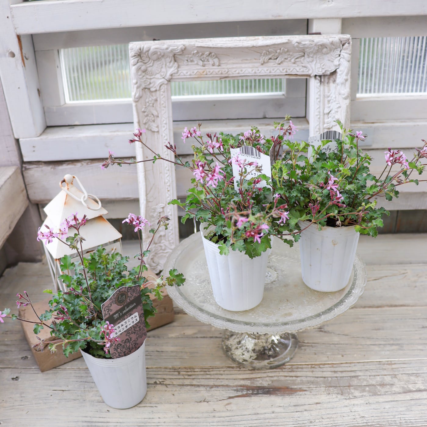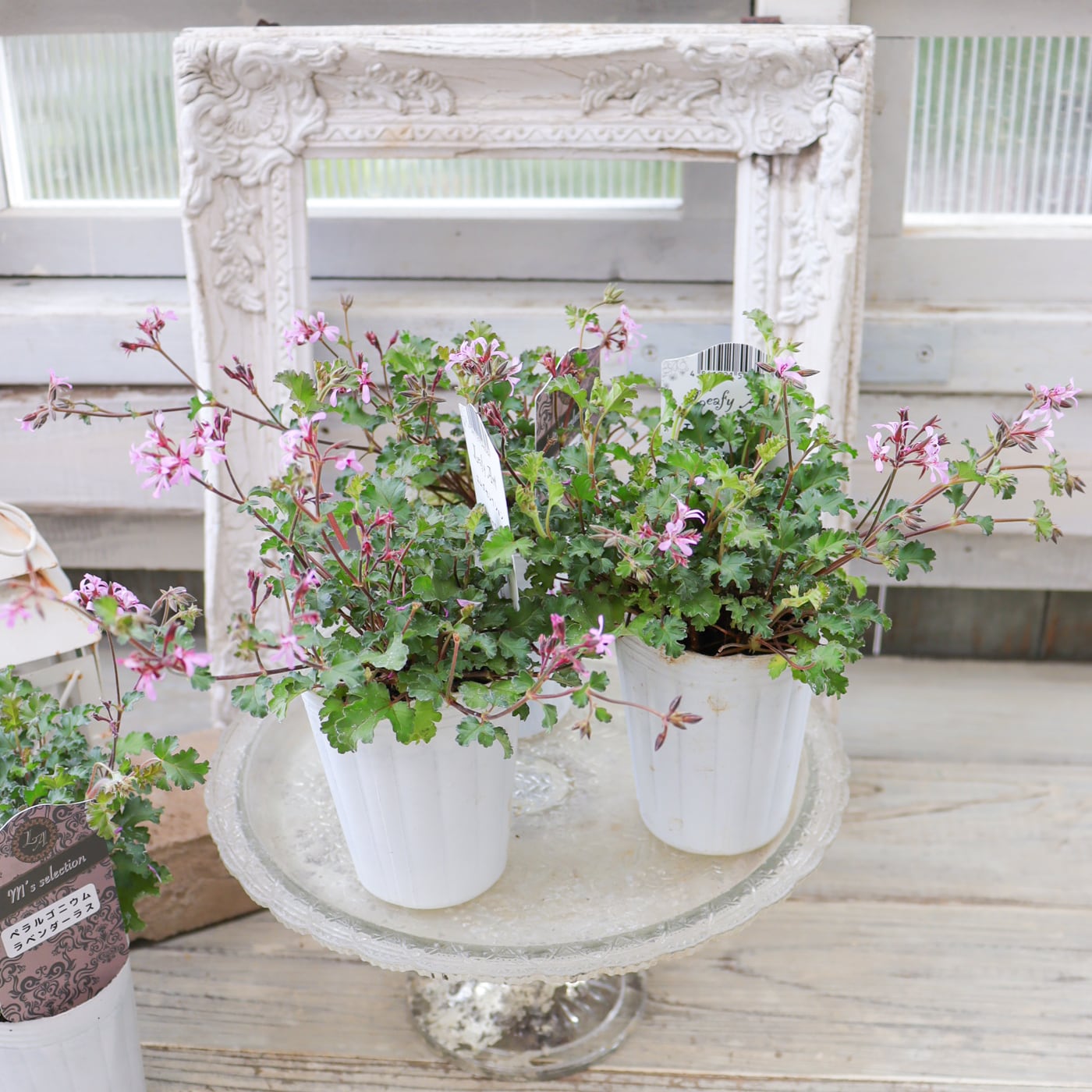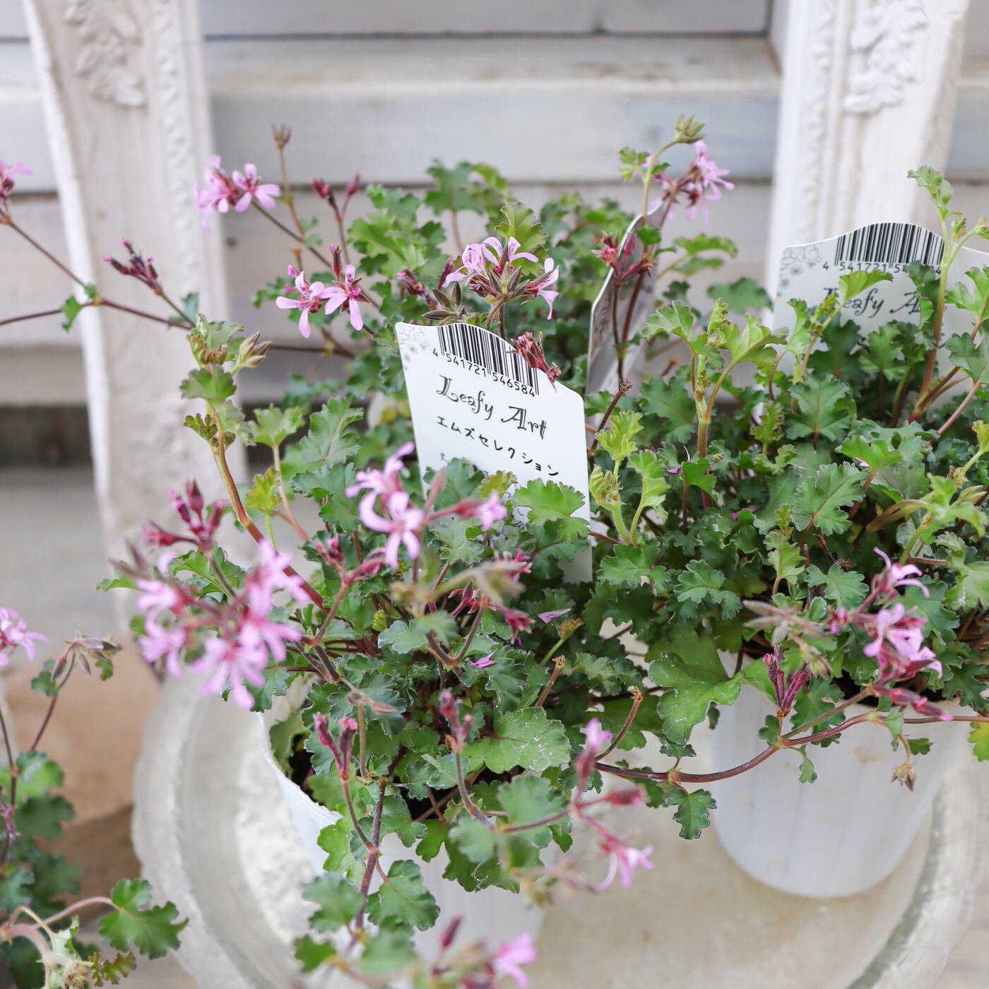 繊細な葉と小花が寄せ植えをナチュラルに引き立てます。
