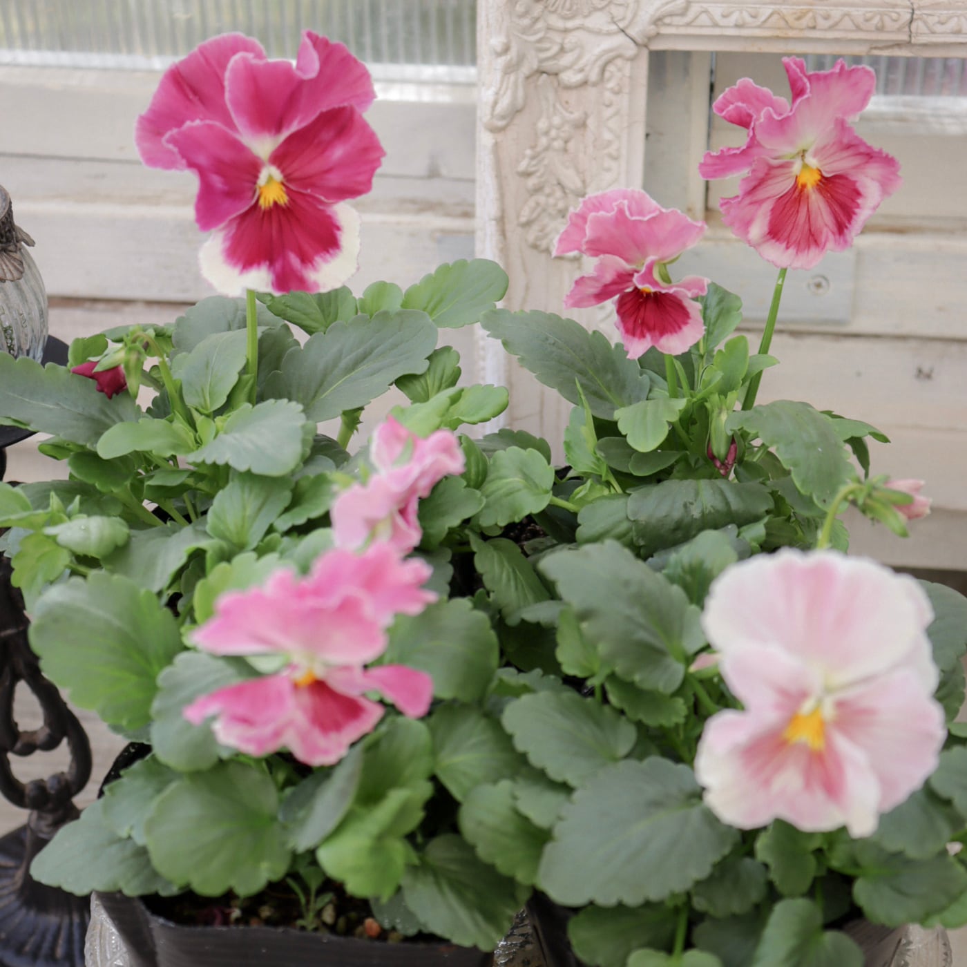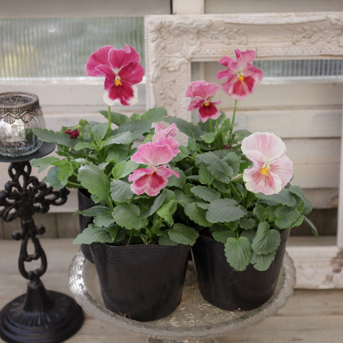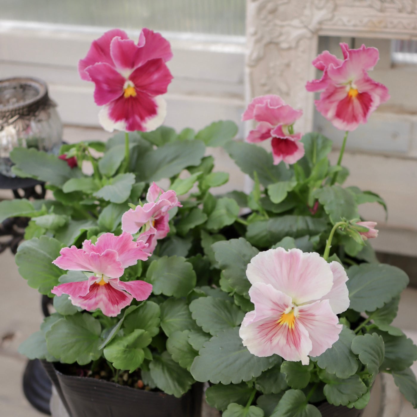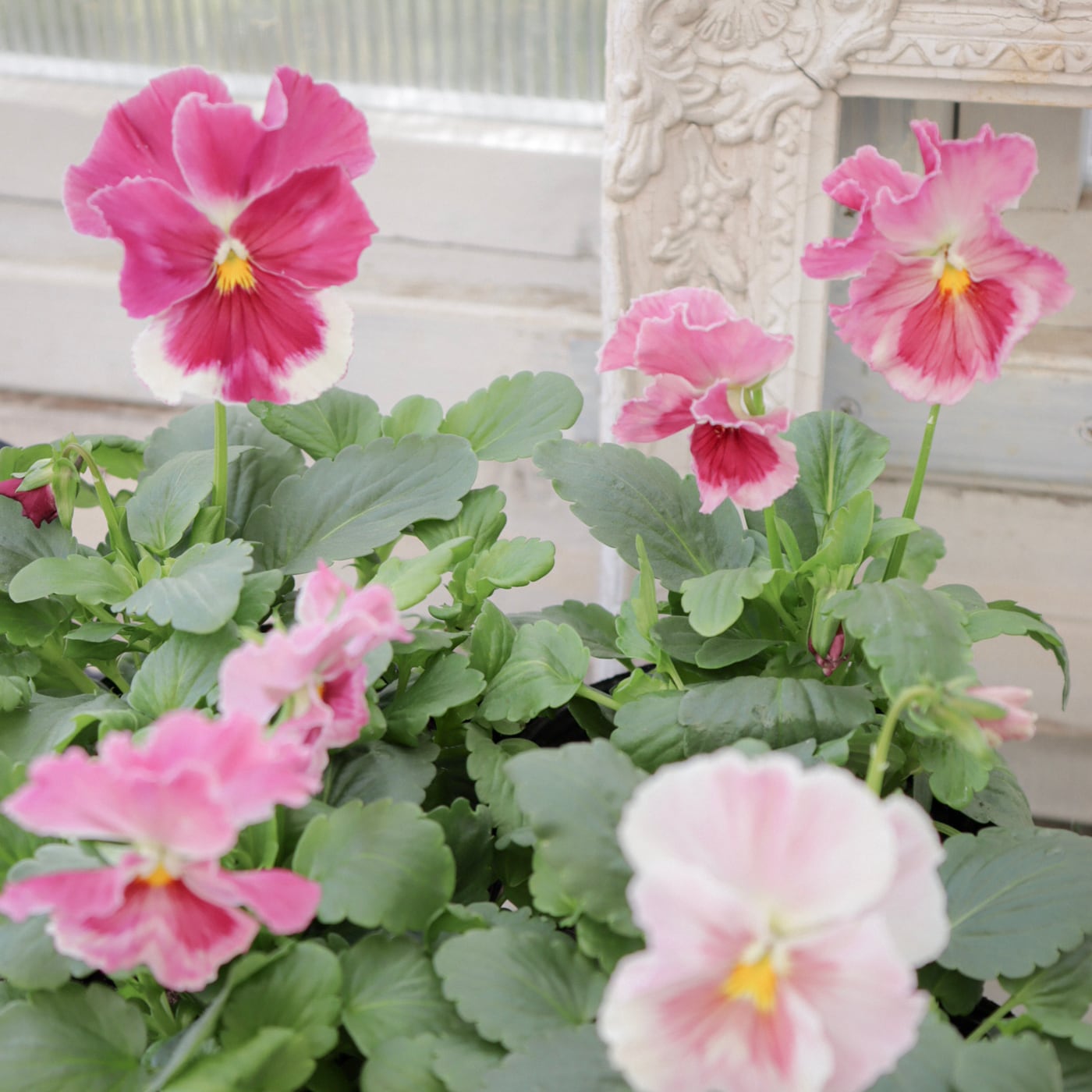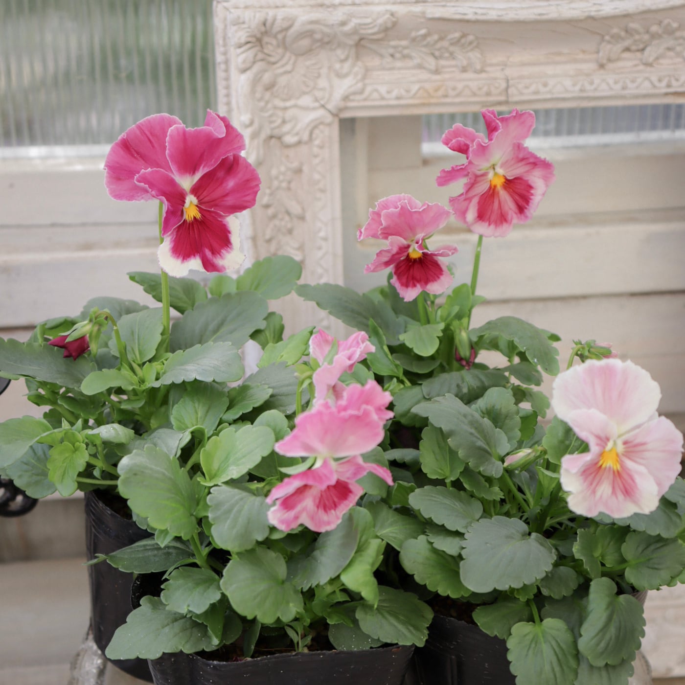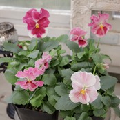 柔らかなピンクから濃いローズピンクへと移りゆく花色が美しいパンジー。