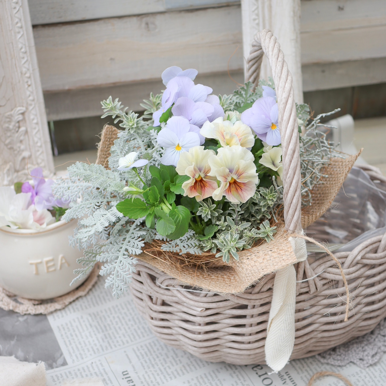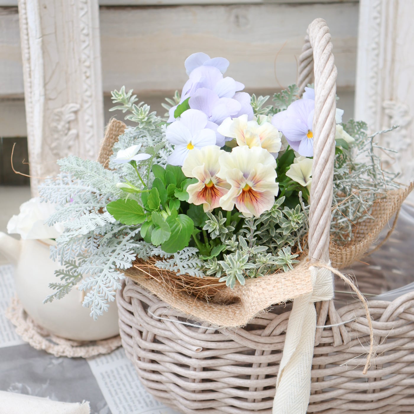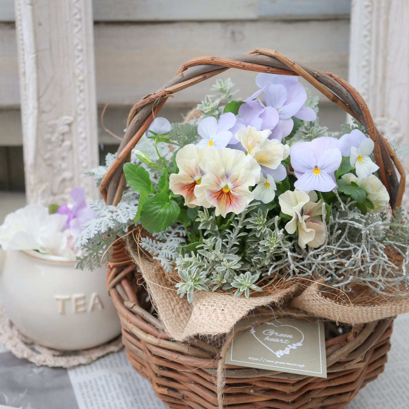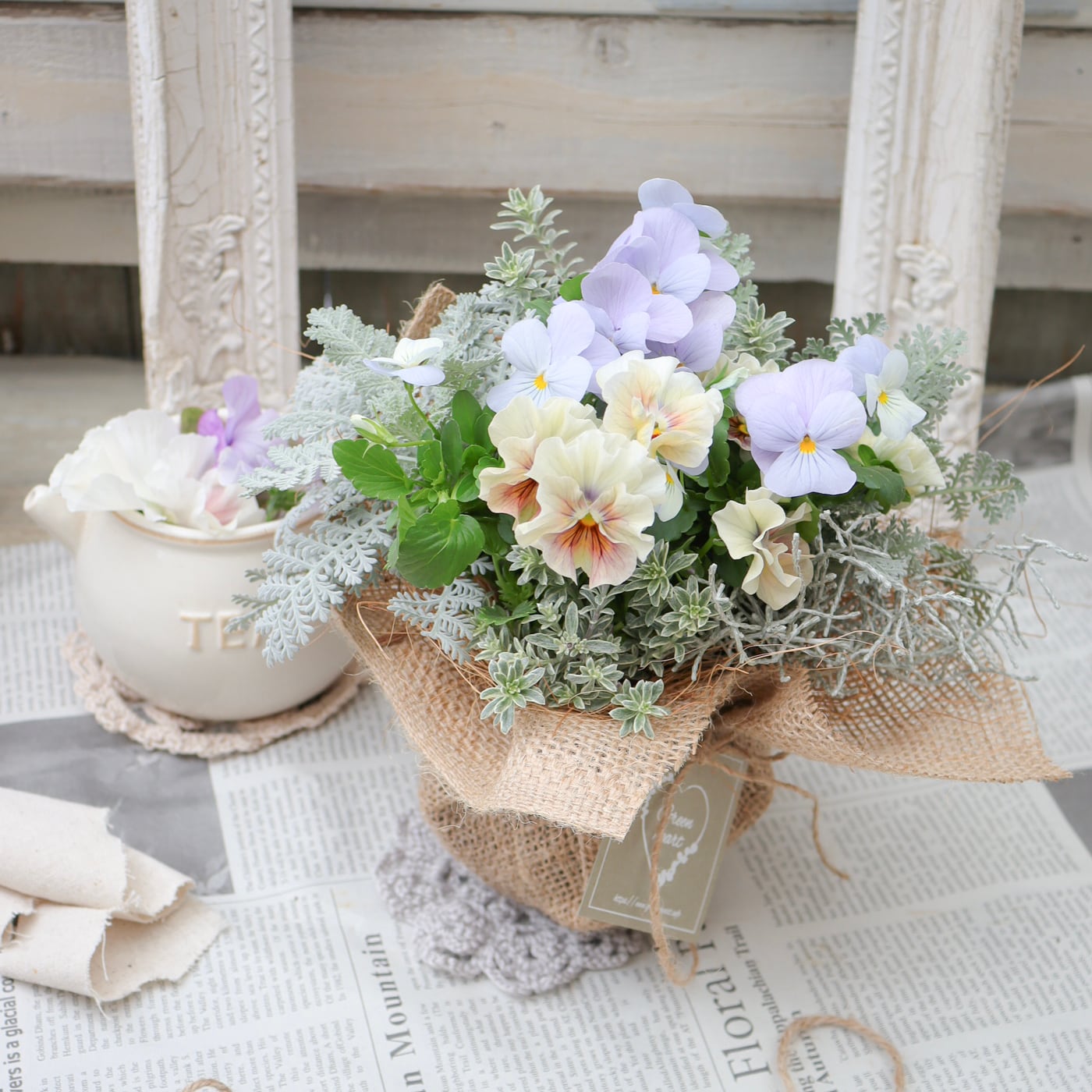 花苗ブーケ-フルールネスト-やさしい花の巣- No.1【Green heartオリジナル-育てるミニブーケ】