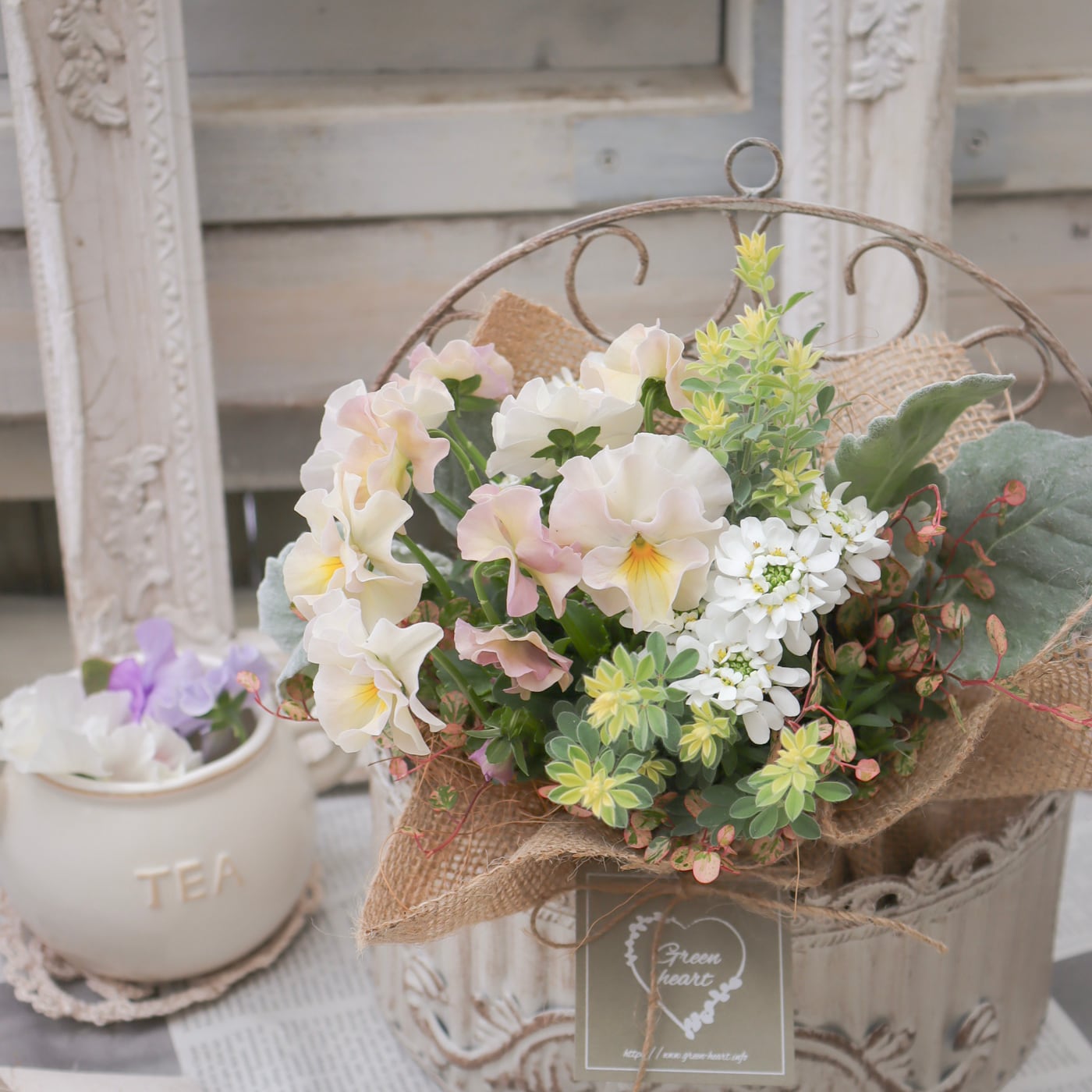 Green heart オリジナルの「花苗ブーケ(フルールネスト)」です。