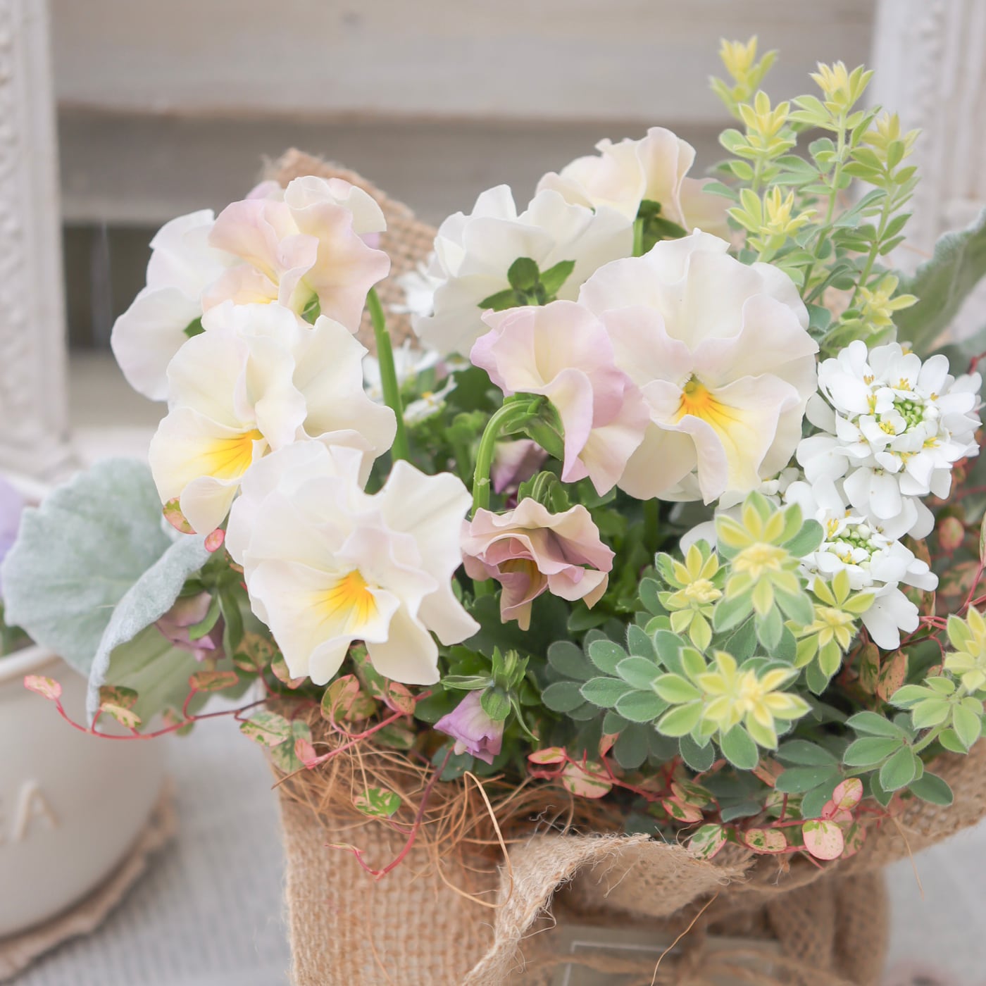 こちらの花苗ブーケは、ご自宅でお花を楽しむ方向けに制作しています。