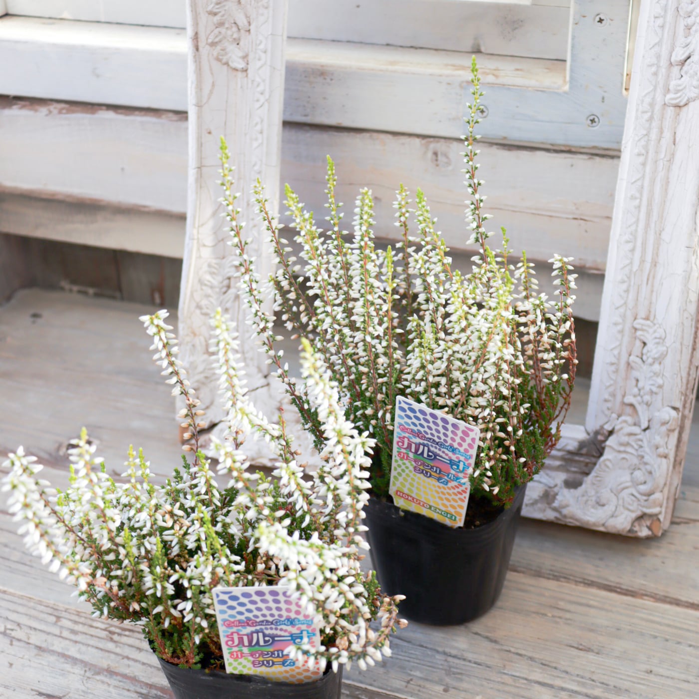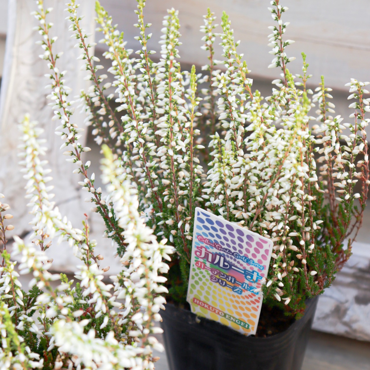 すらりと伸びた花穂に、白い小花がびっしりと並ぶカルーナ・ガーデンガールズ。