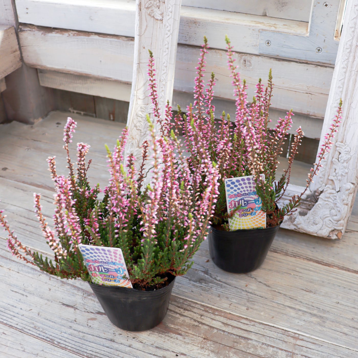 淡い桜色とほんのりベージュを帯びた柔らかな花色で、冬の寄せ植えをやさしく彩ります。