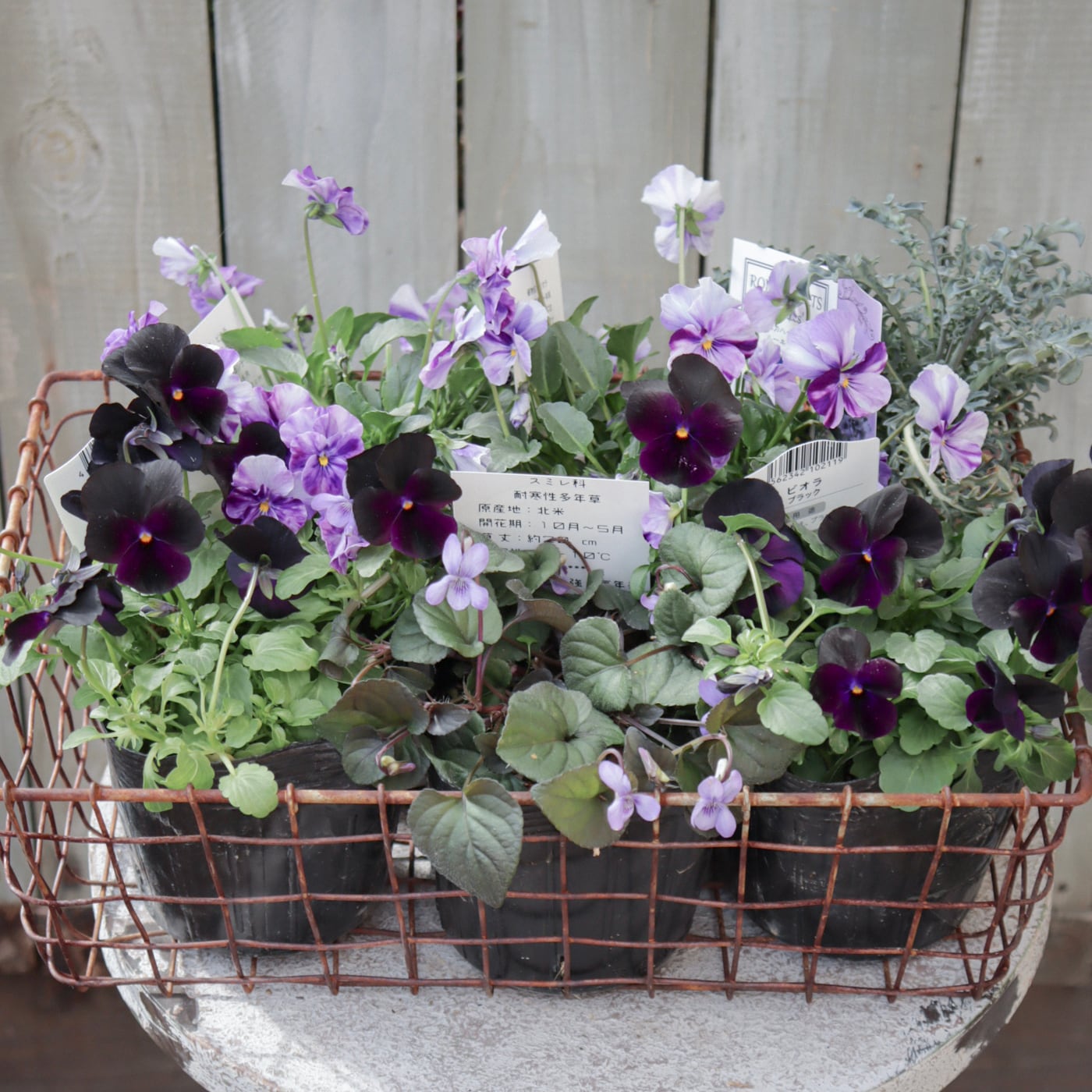 ブラックビオラとルーキーズでつくる、静かな冬庭の苗セット