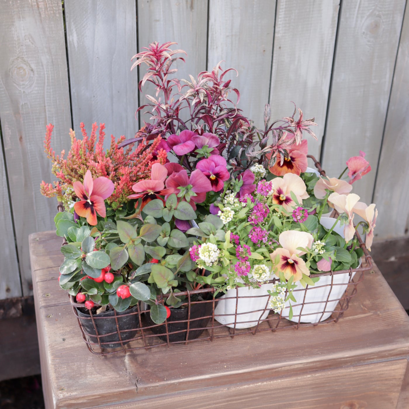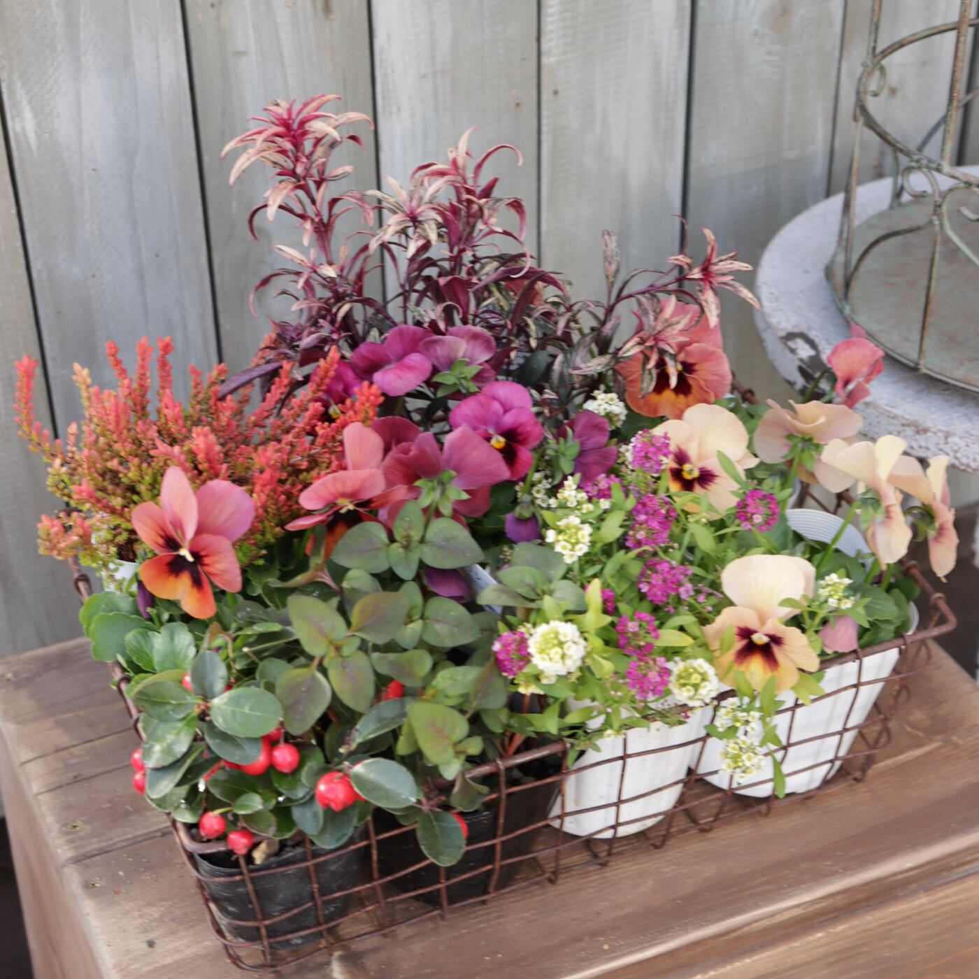 ・冬から春先まで、長く楽しめる寄せ植えとして