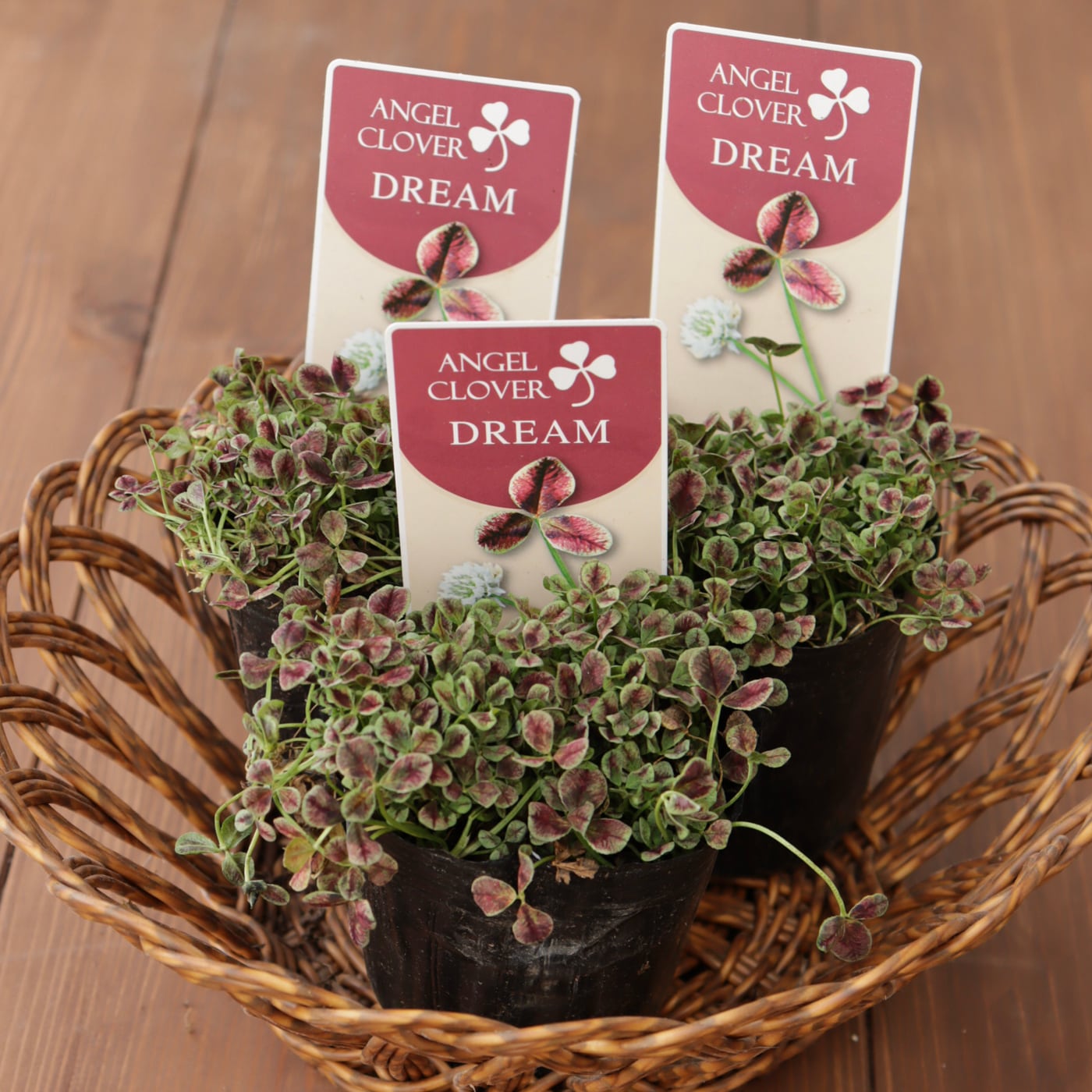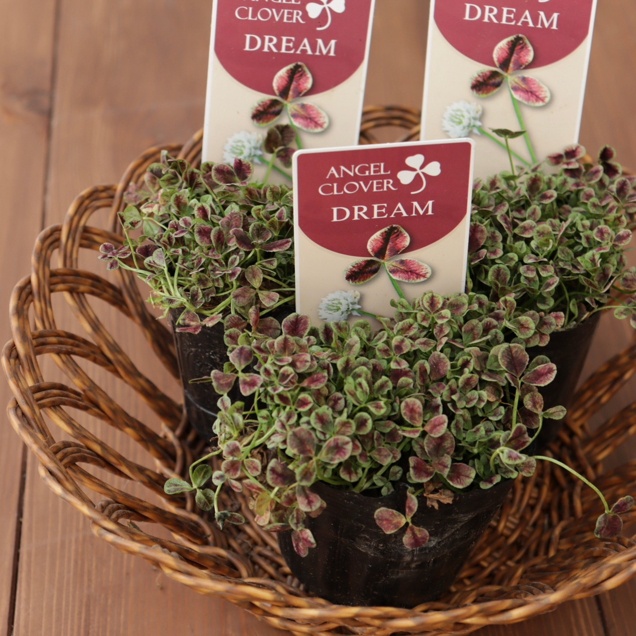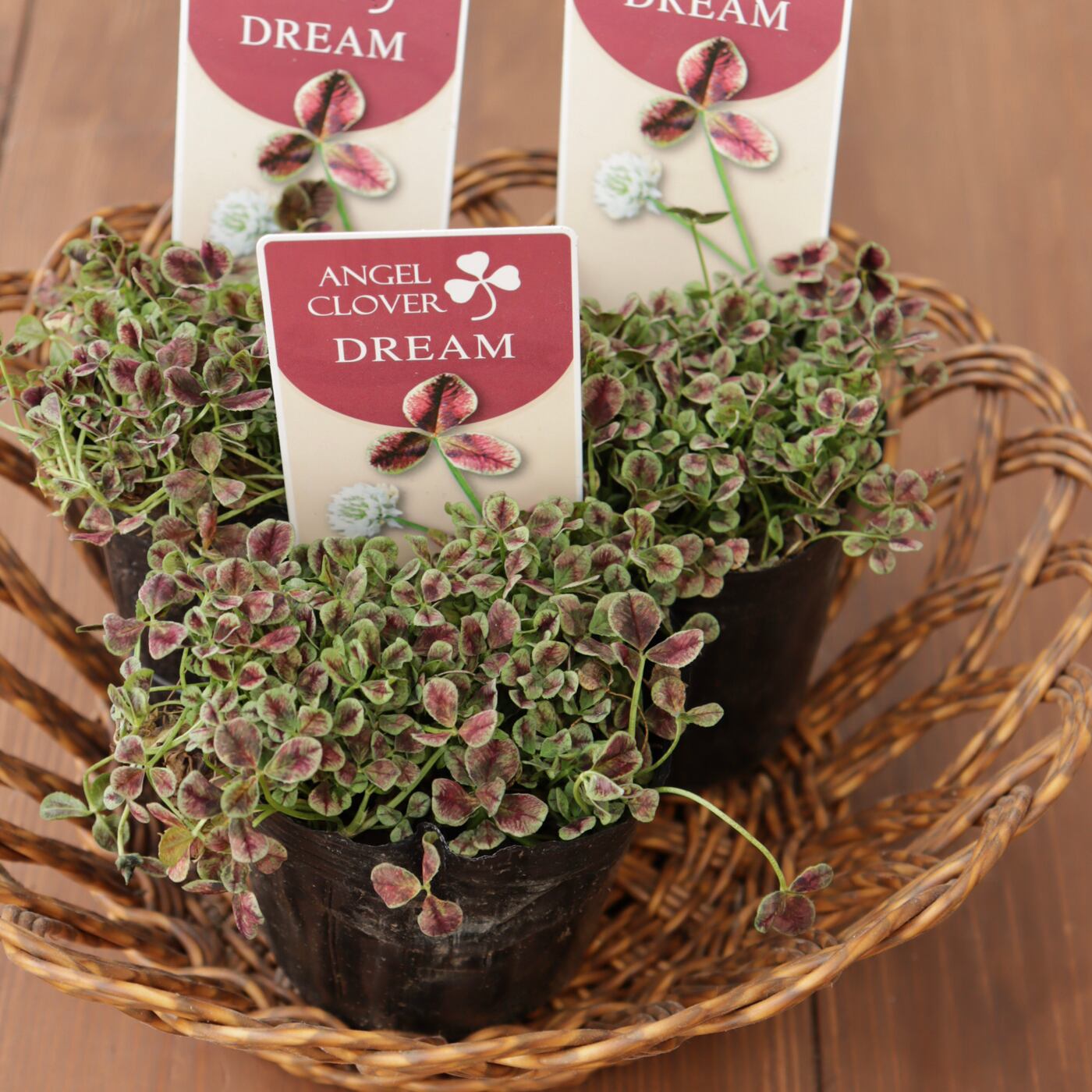 エンジェルクローバー ‘ドリーム’は、葉に赤みのあるニュアンスが入る、
