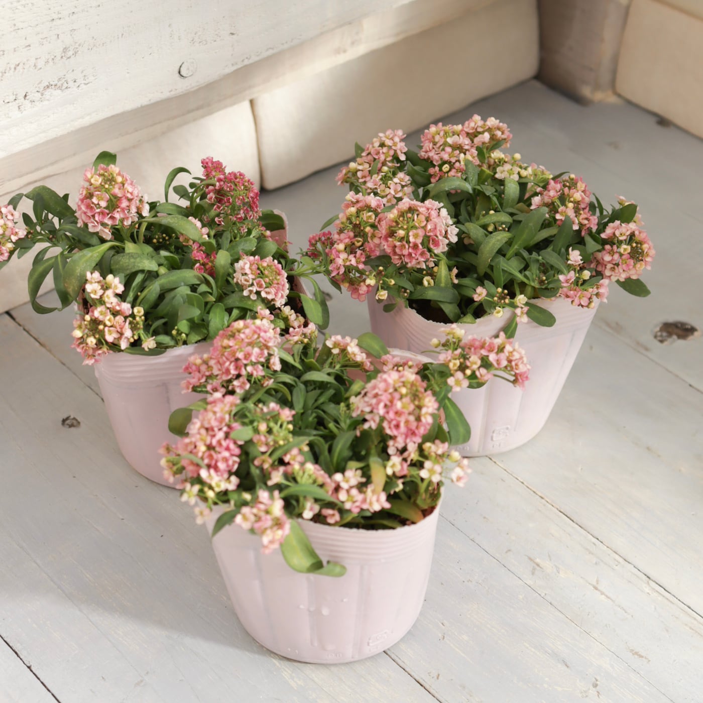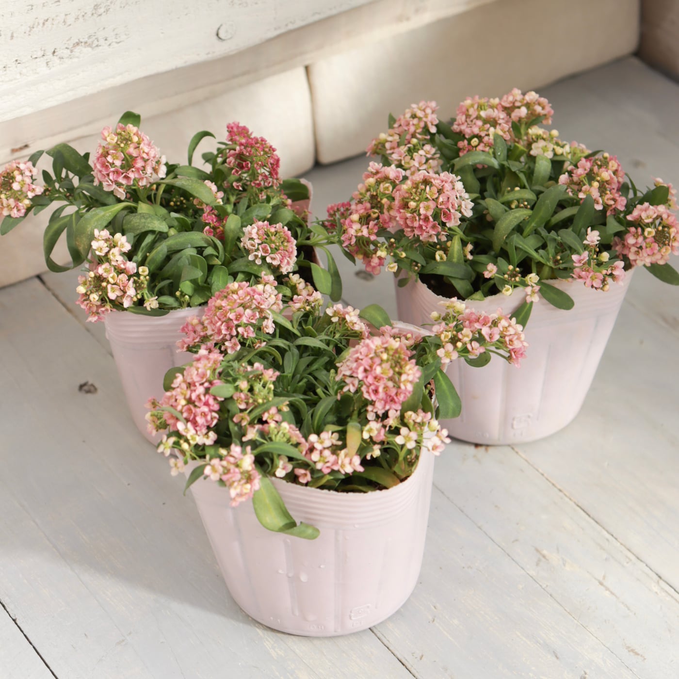 やさしいアプリコットピンクの花色が魅力のアリッサム。