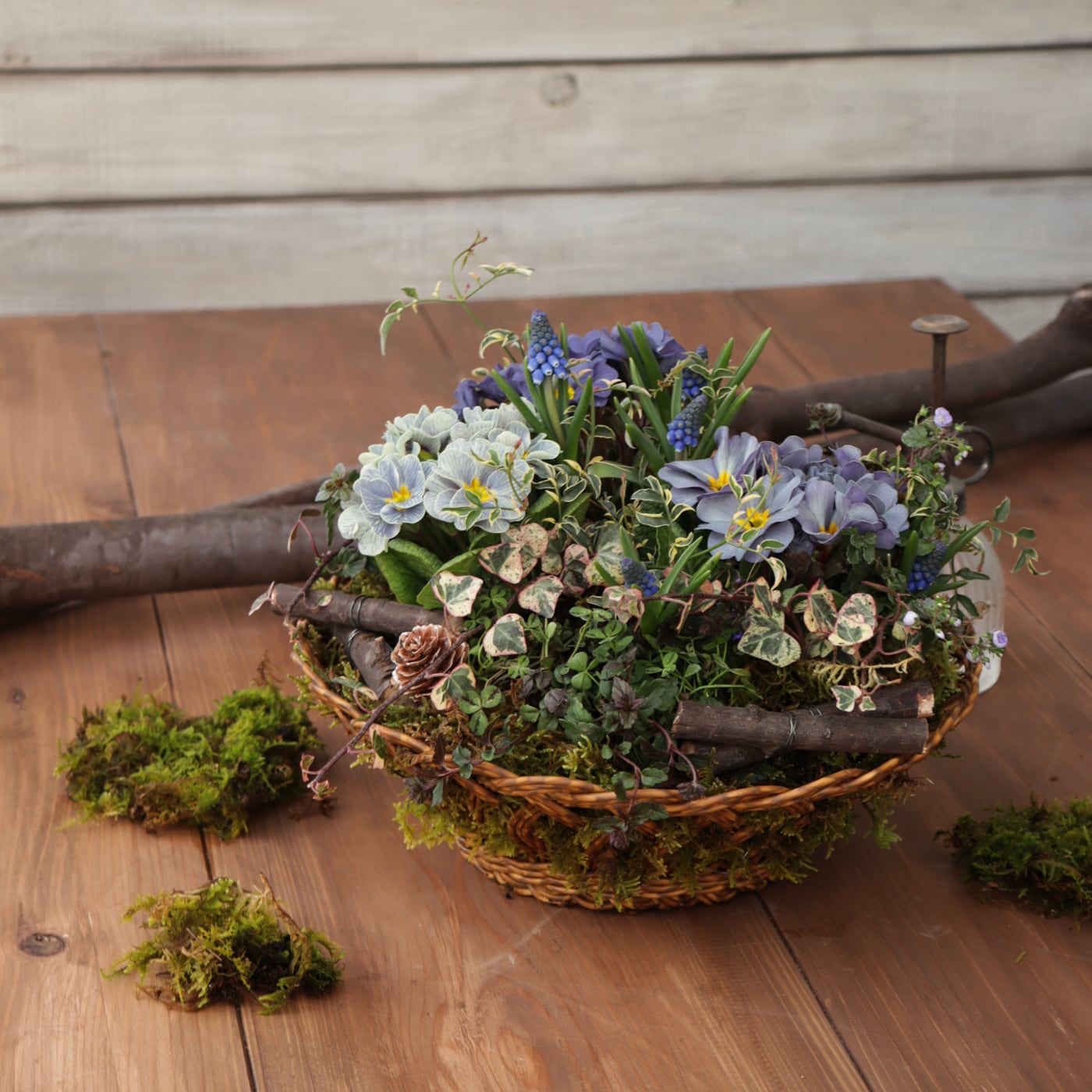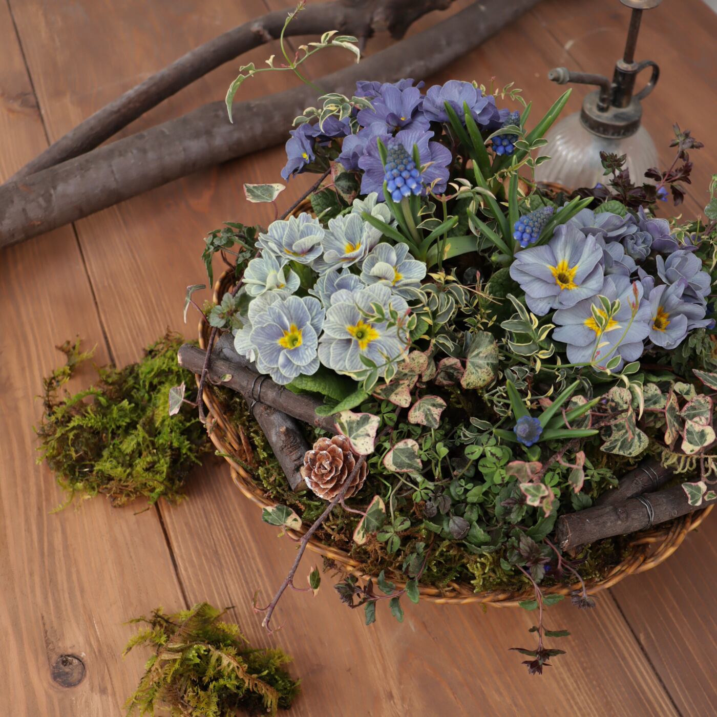 自然な風合いを大切に、寄せ植えの仕上げやディスプレイにぜひ取り入れてみてください。