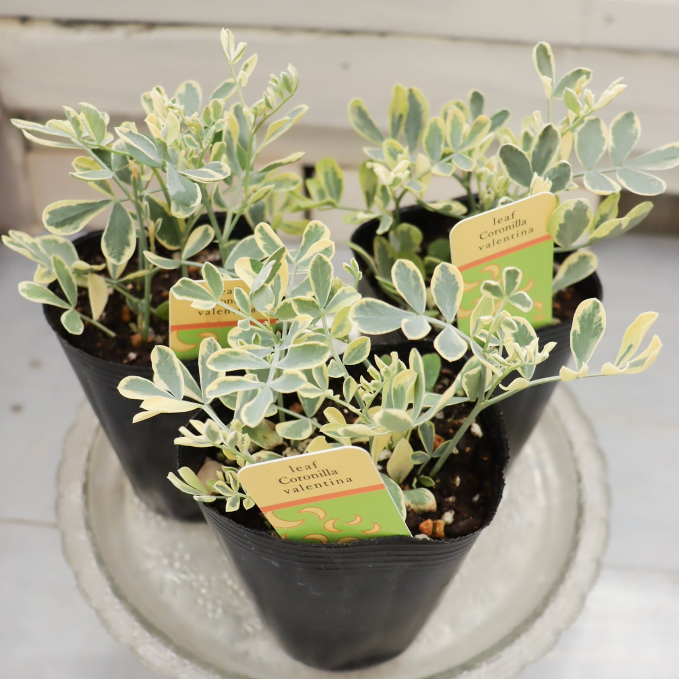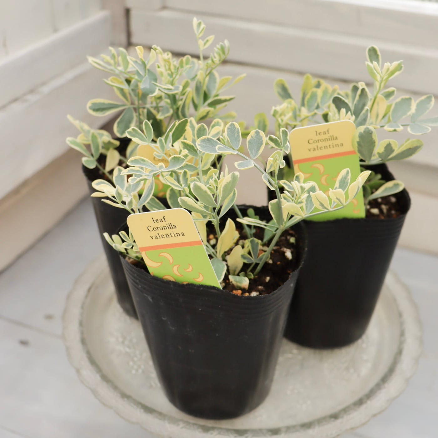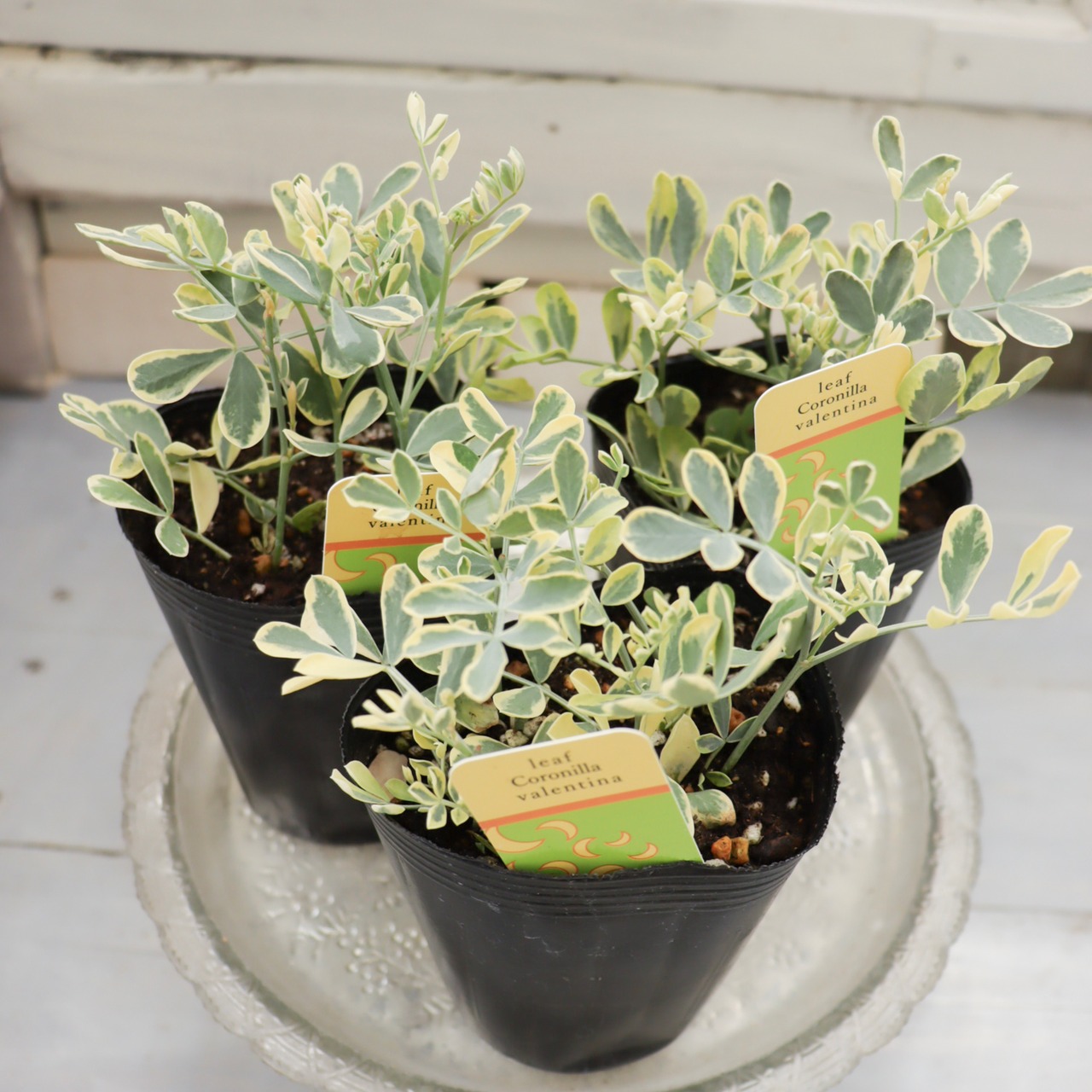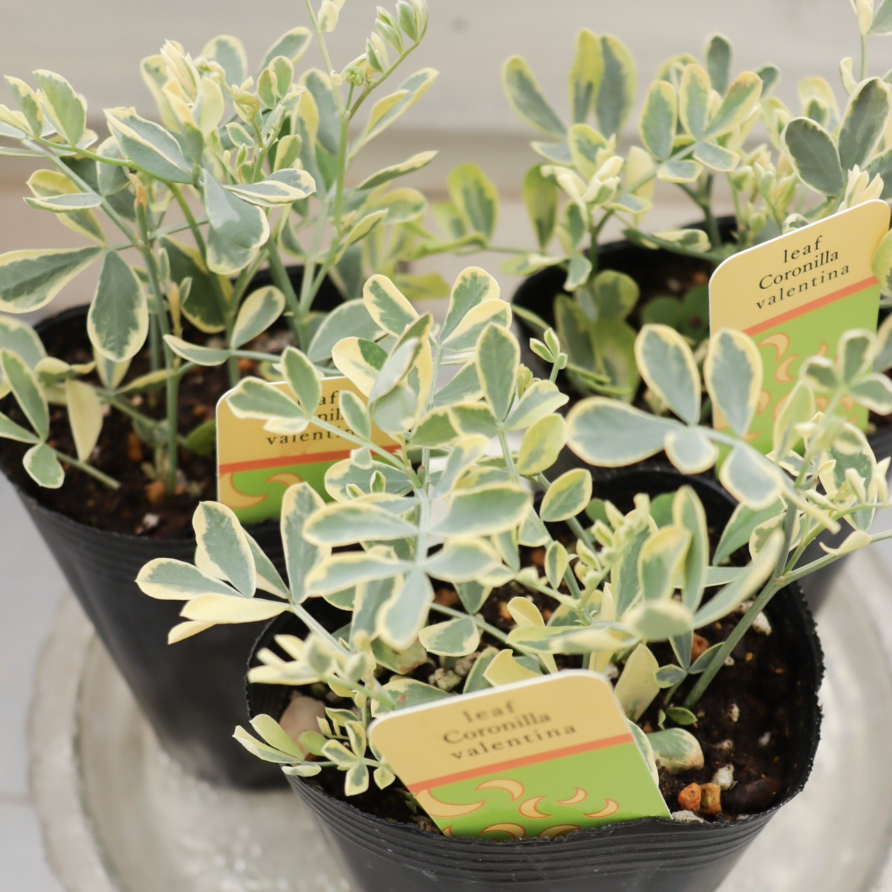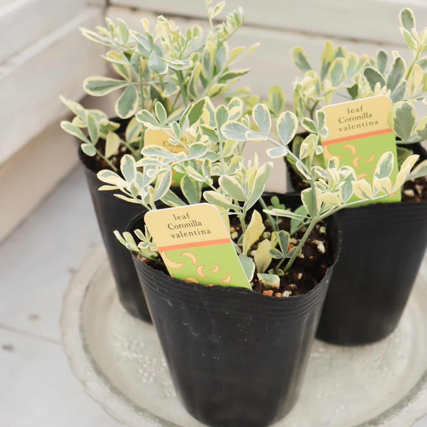 斑入りの葉がやさしく明るい印象の、コロニラ・バレンティア バリエガータ。