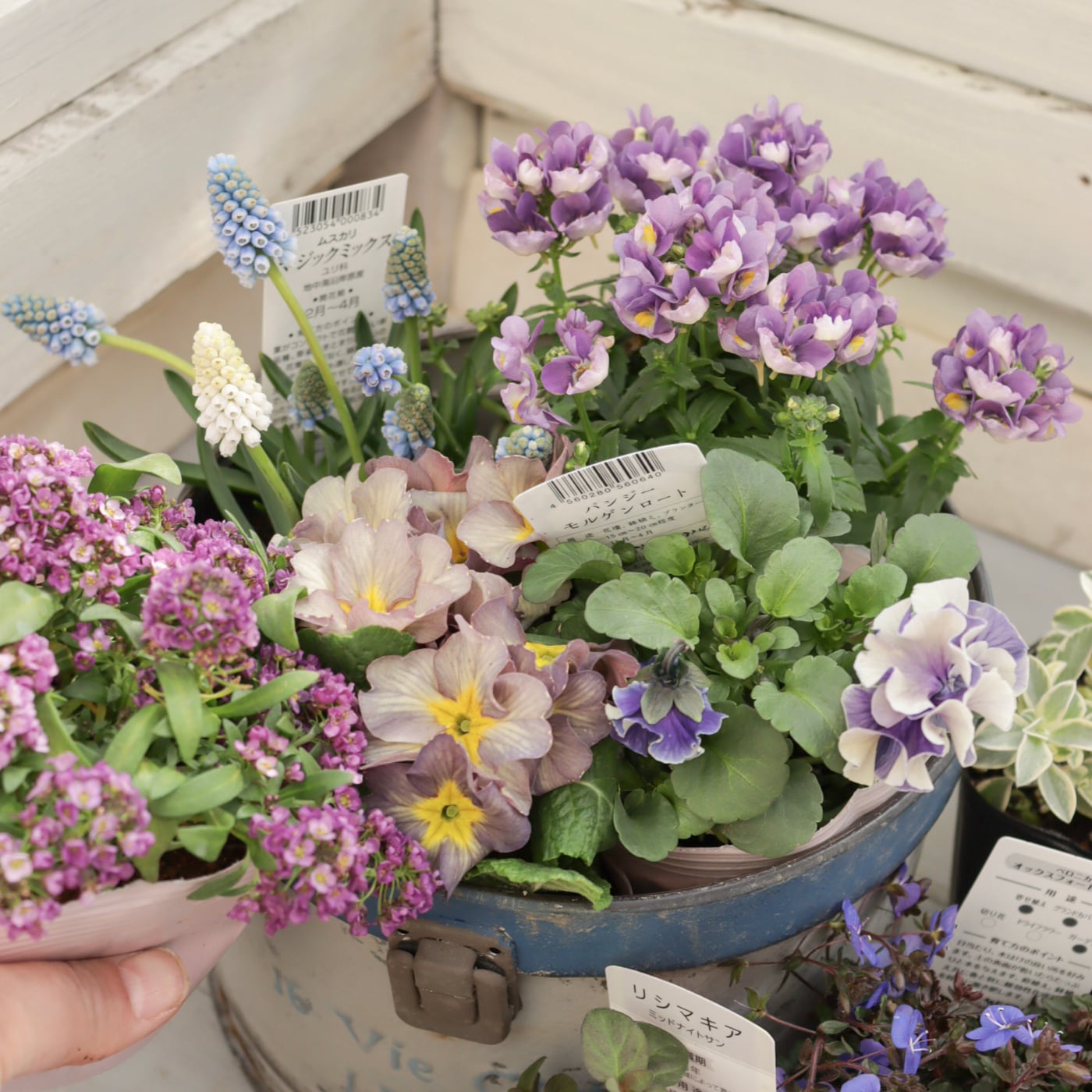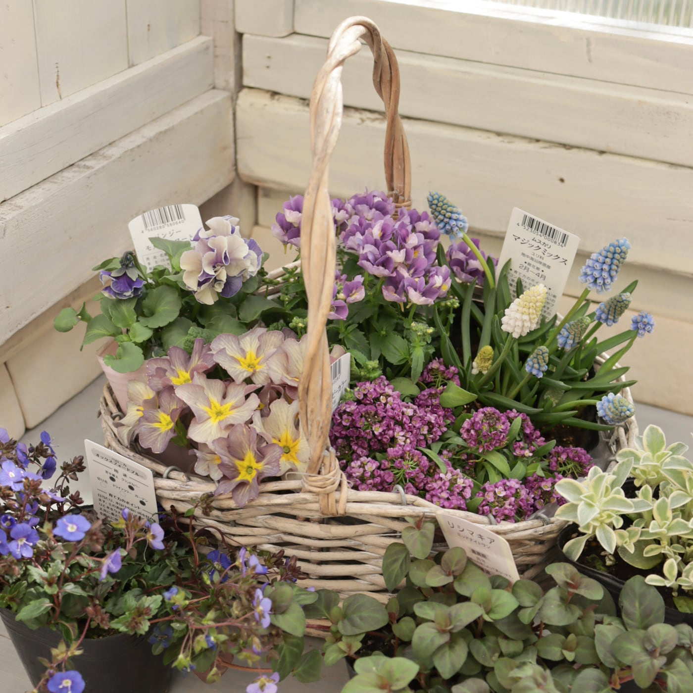 ・主な苗:ムスカリ、プリムラ、ネメシア、アリッサム、ベロニカ、斑入りグリーンなど