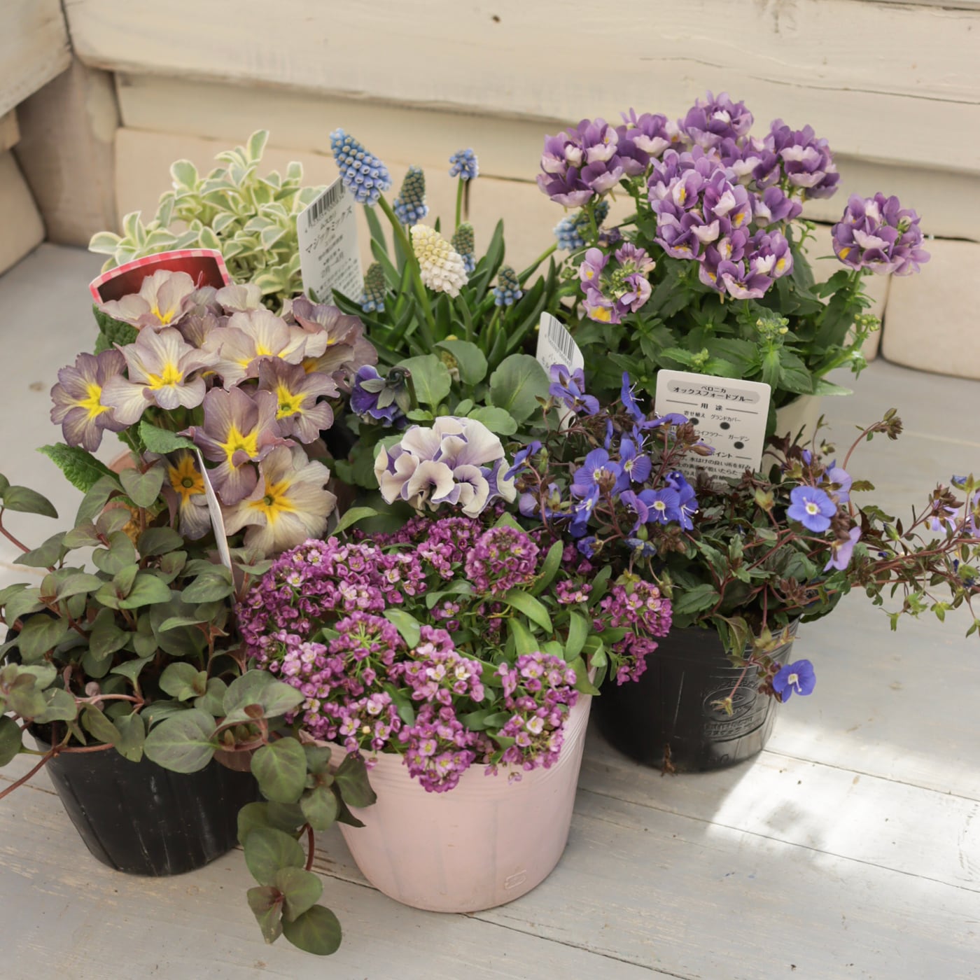 春色ニュアンス苗セット|ムスカリ&プリムラ入り・やさしい紫とピンクの寄せ植え向き花苗セレクト