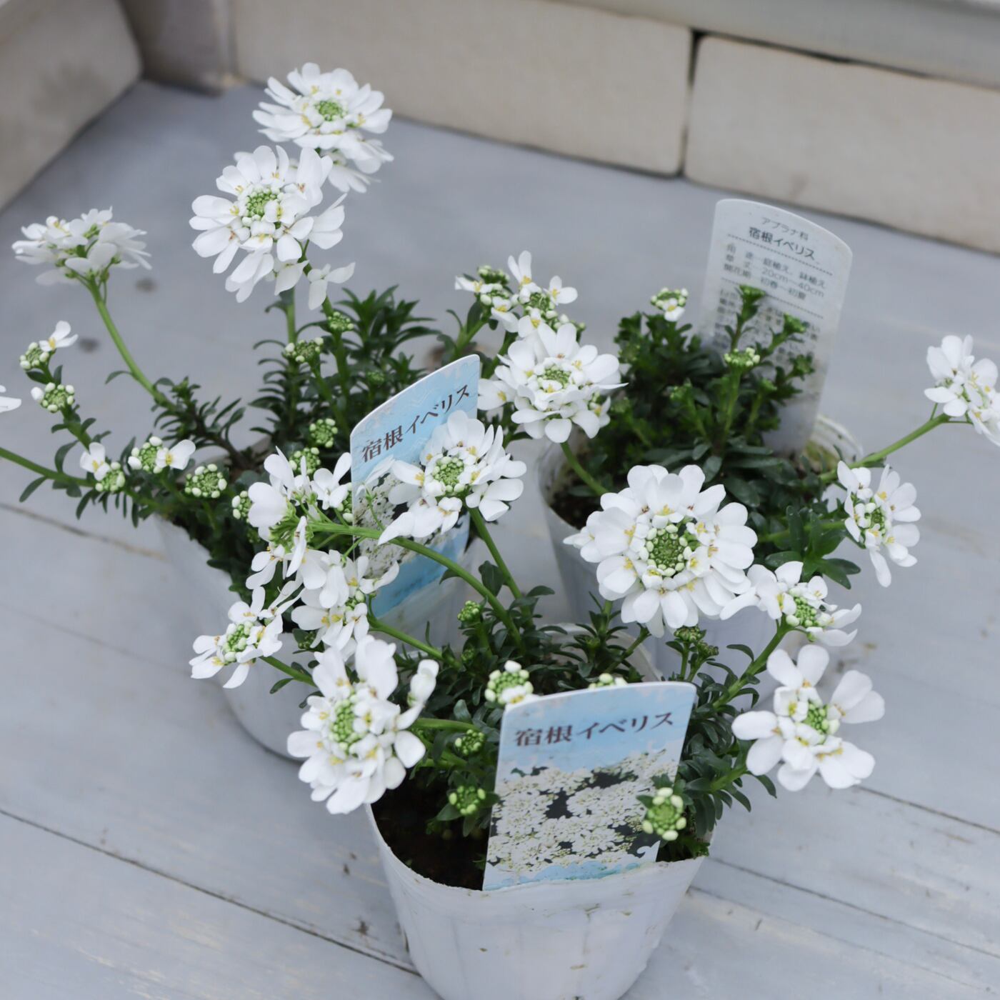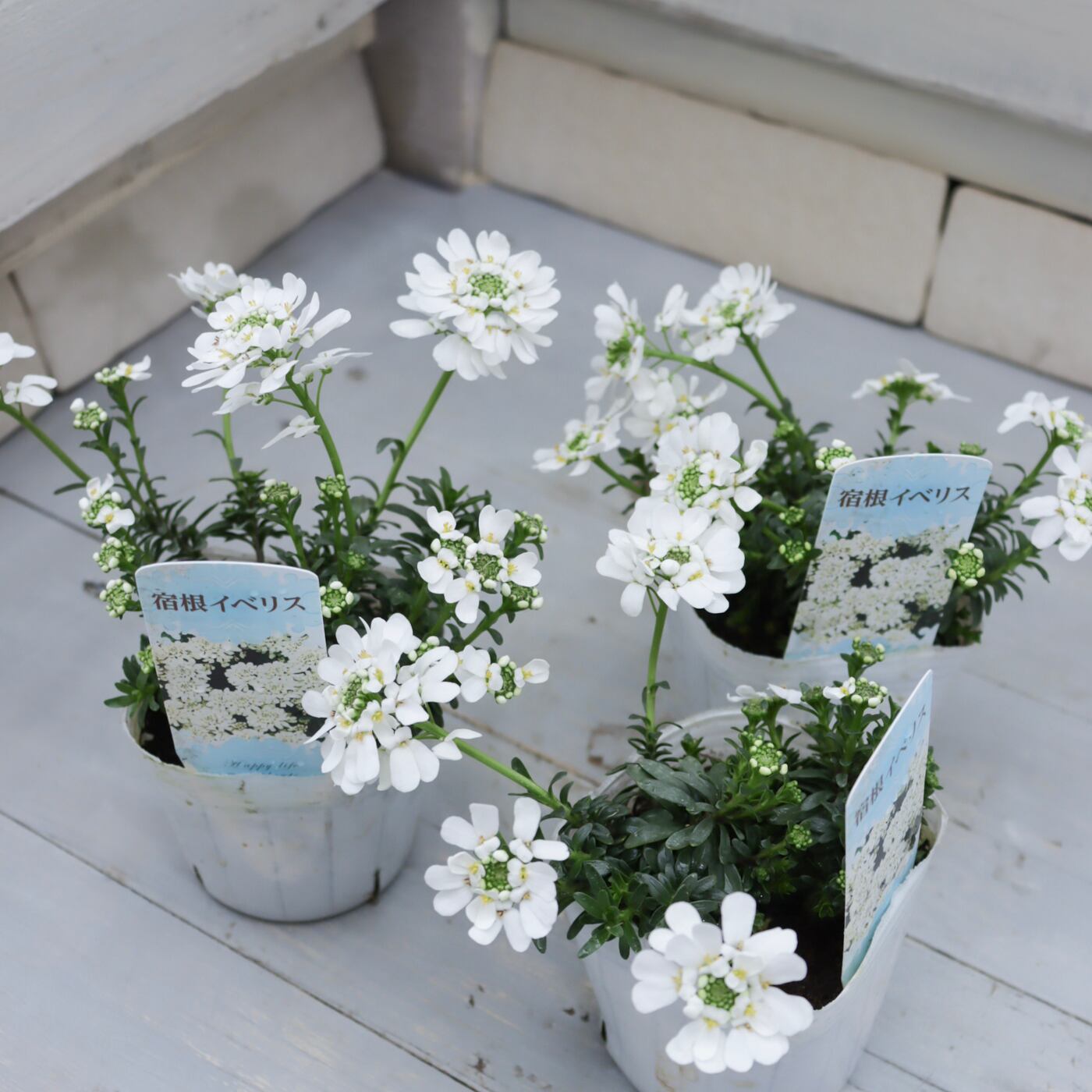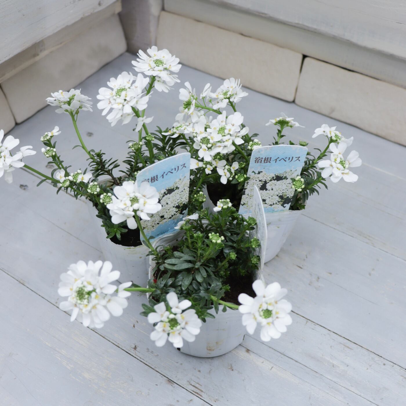 清楚な純白の花がこんもりと咲き、冬〜春の寄せ植えを一気に明るくしてくれる宿根イベリス。
