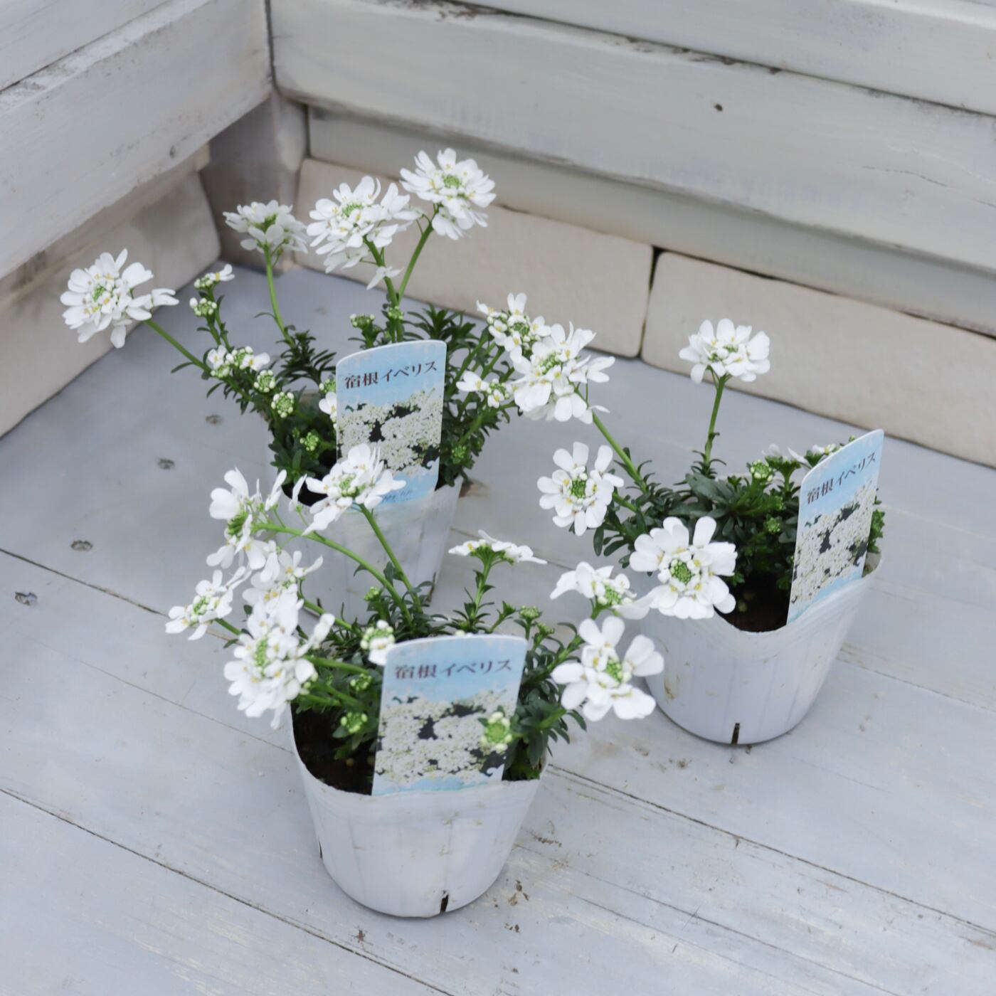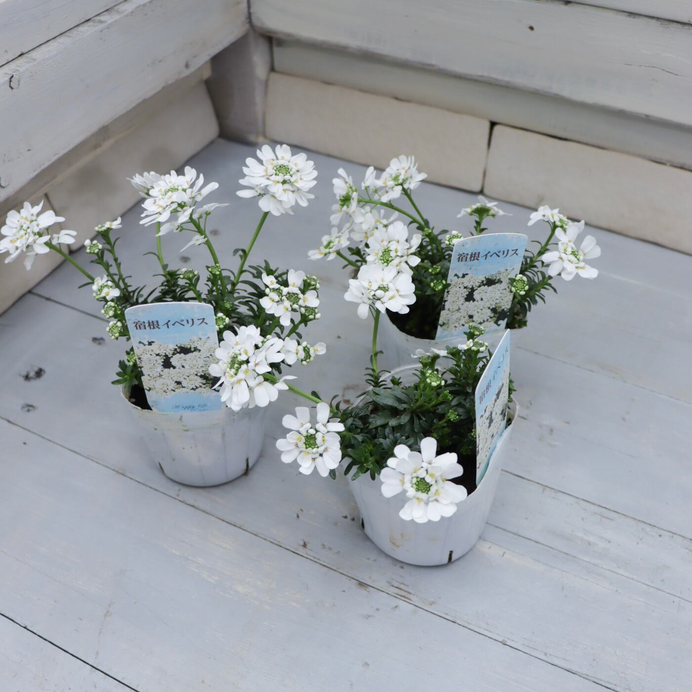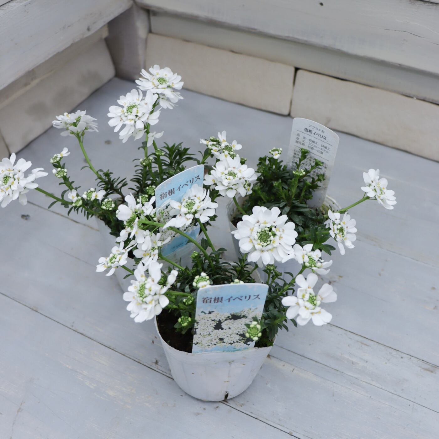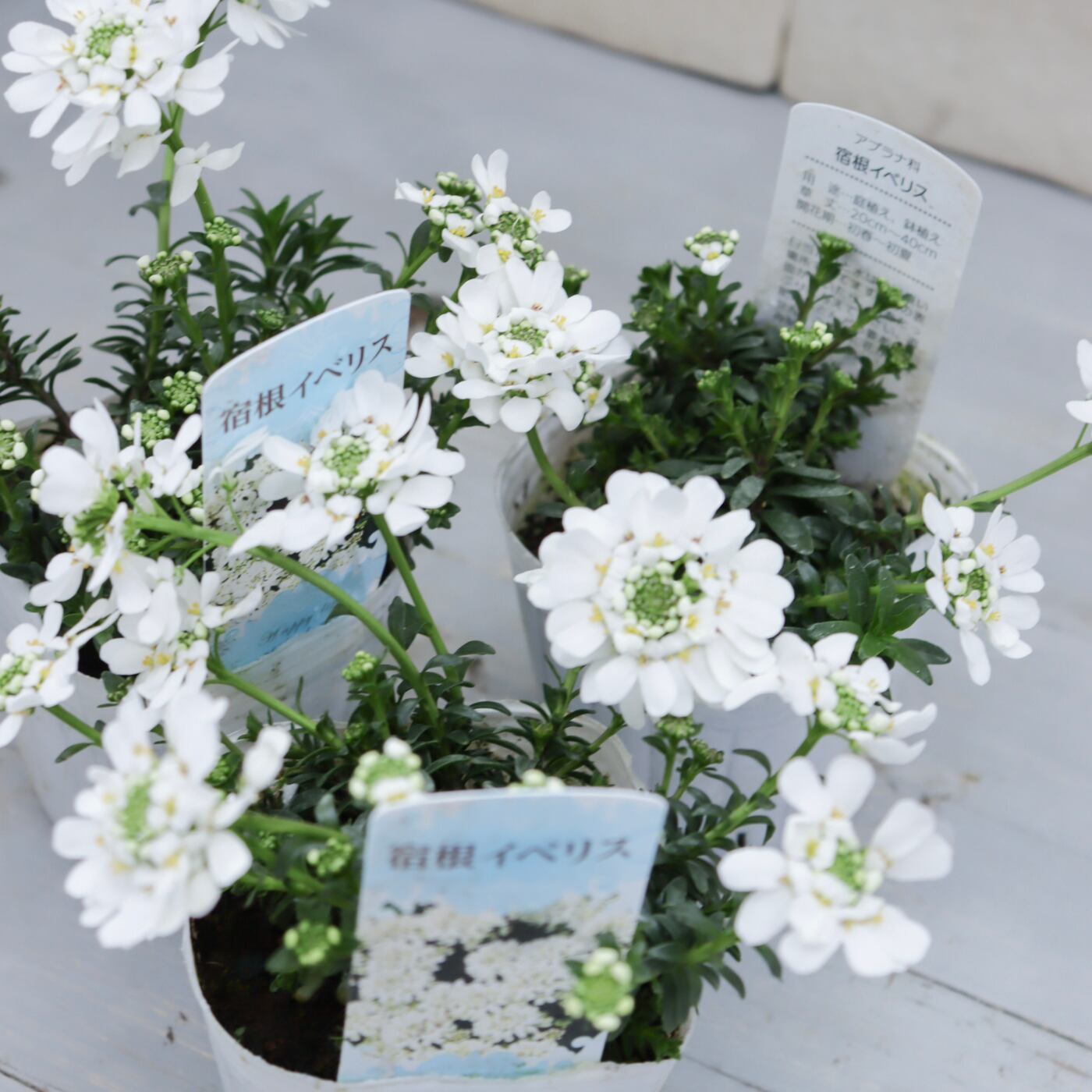 清楚な純白の花がこんもりと咲き、冬〜春の寄せ植えを一気に明るくしてくれる宿根イベリス。