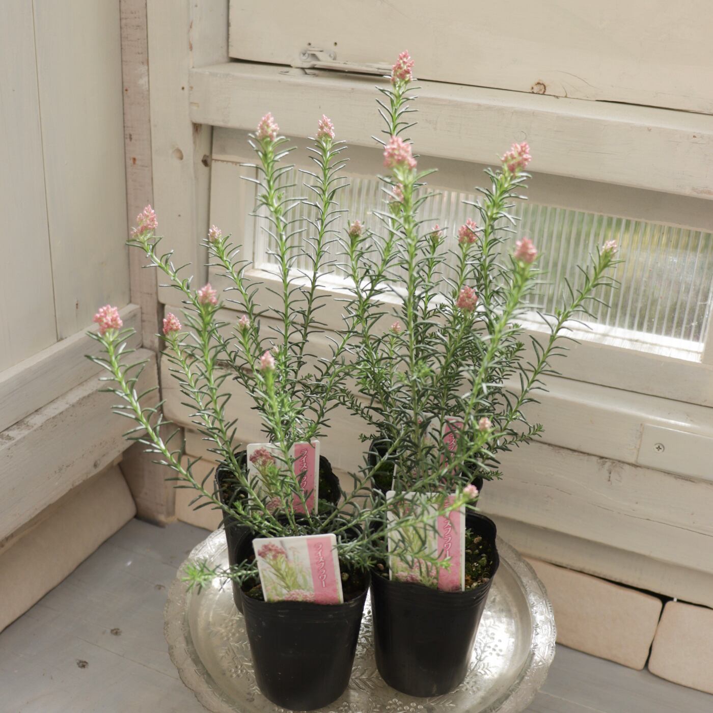 小さなお米のような粒状の花が集まって咲く、可愛らしい花姿が魅力のライスフラワーです。