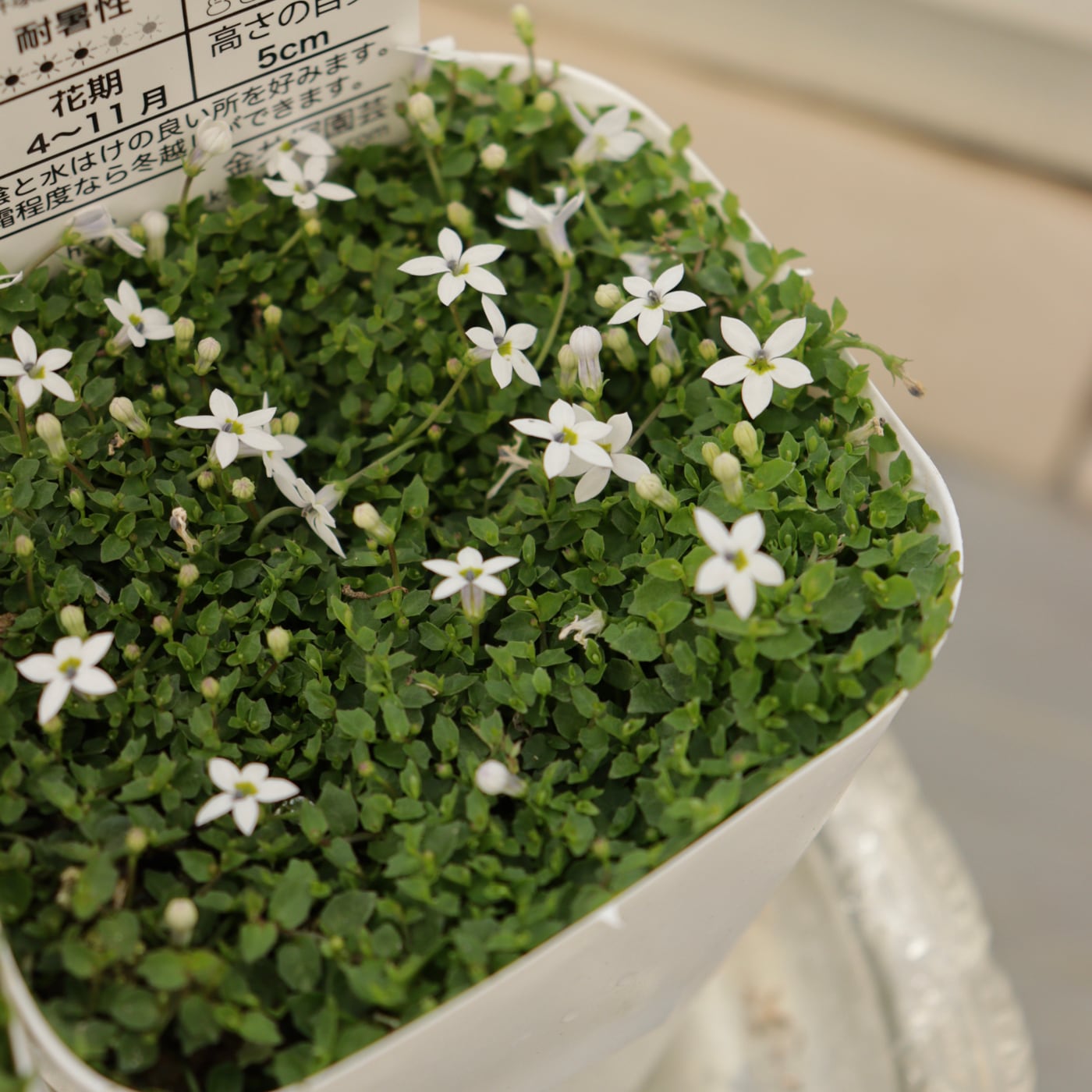 星のように咲く小さな白い花が、やさしく広がるプラティア ホワイト。