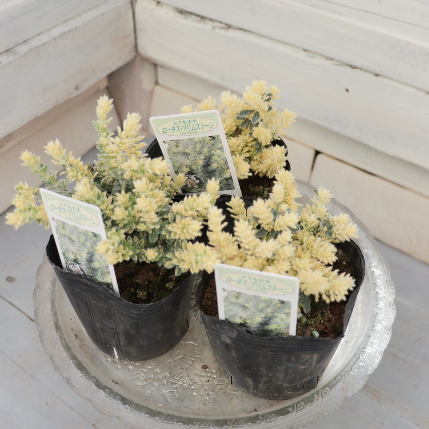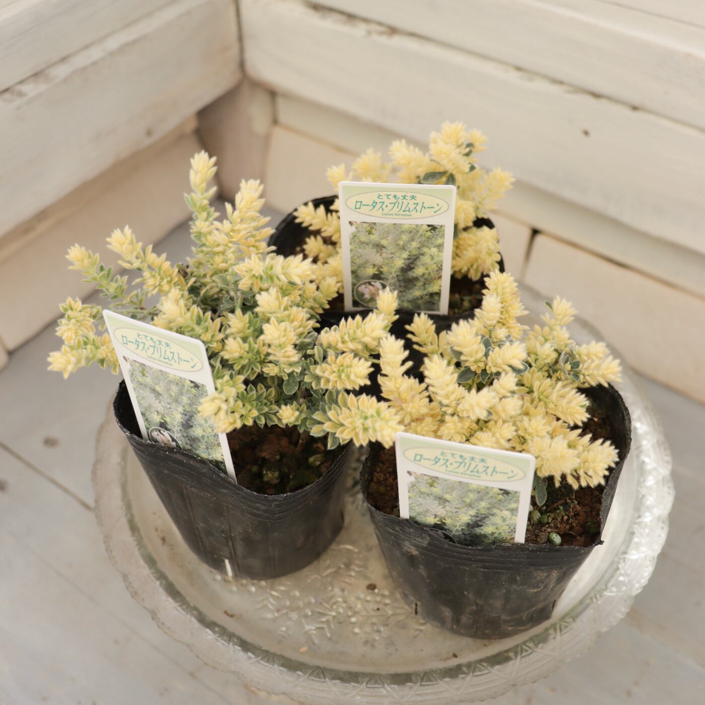 ふんわりとしたクリームイエローの葉がやさしく広がるロータス ブリムストーン。