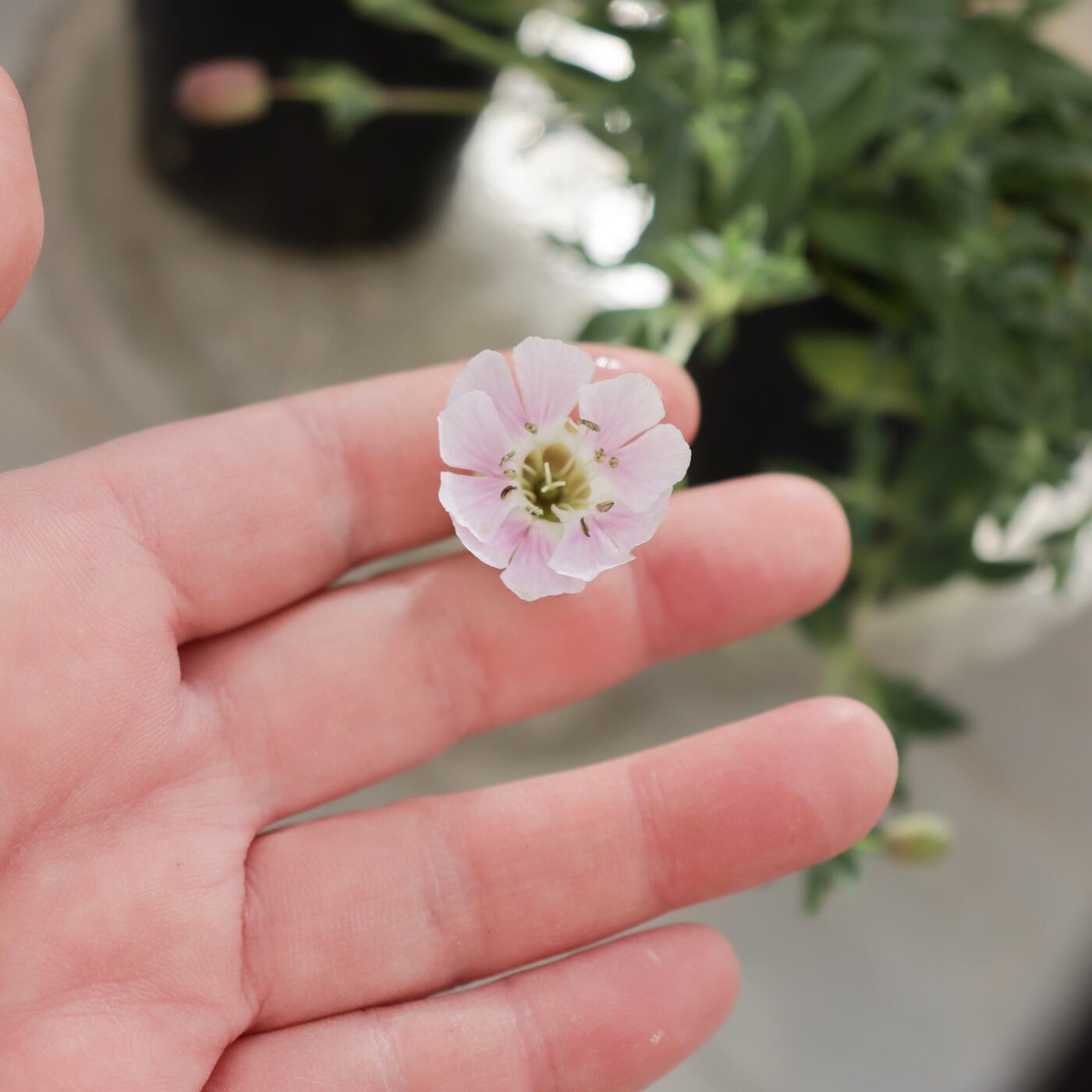 ほんのり桜色の小さな花が、やさしく咲くシレネ シェルピンク。