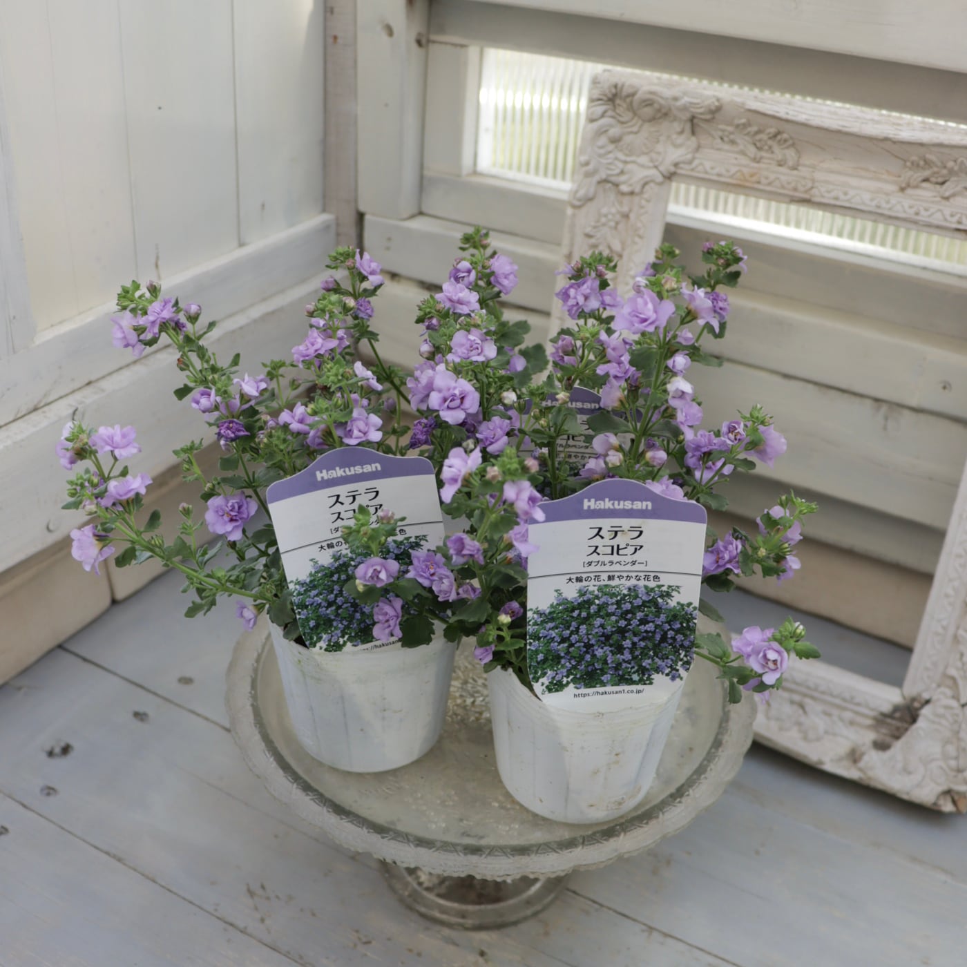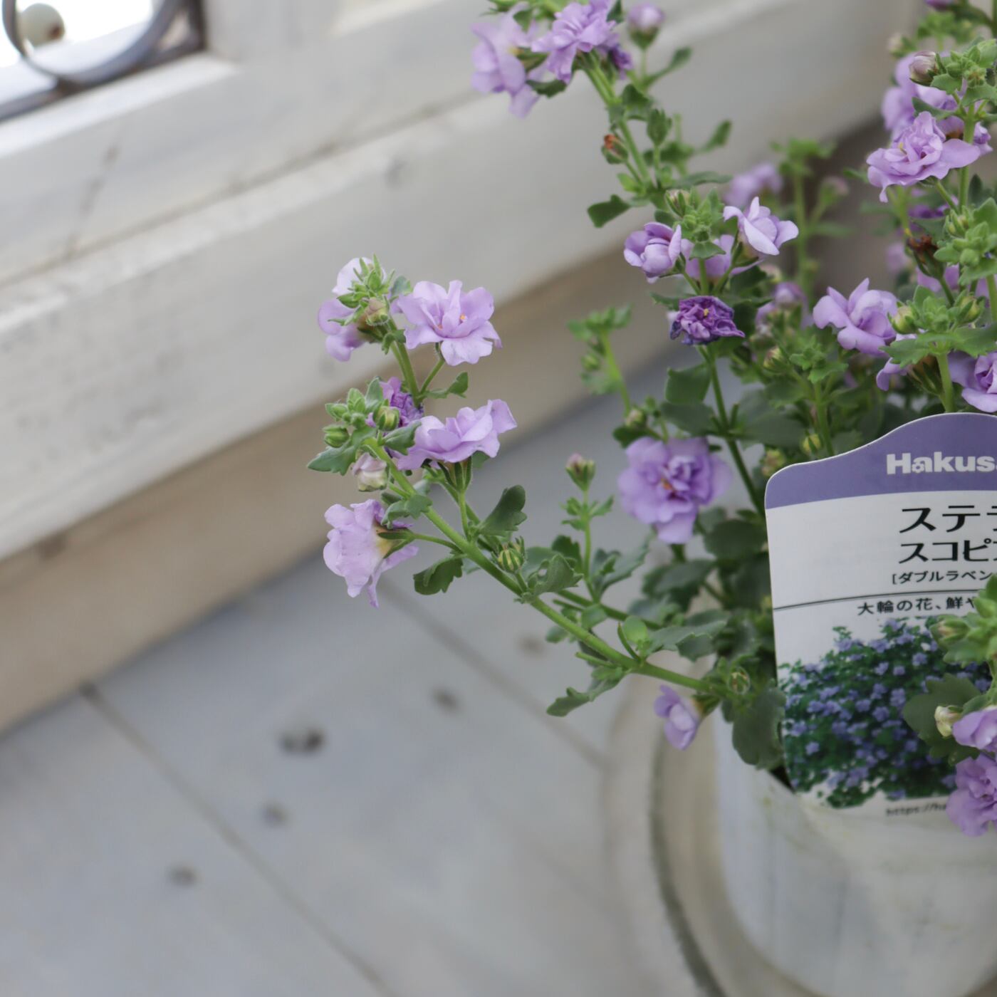 やさしい色合いが寄せ植えに自然となじみ、