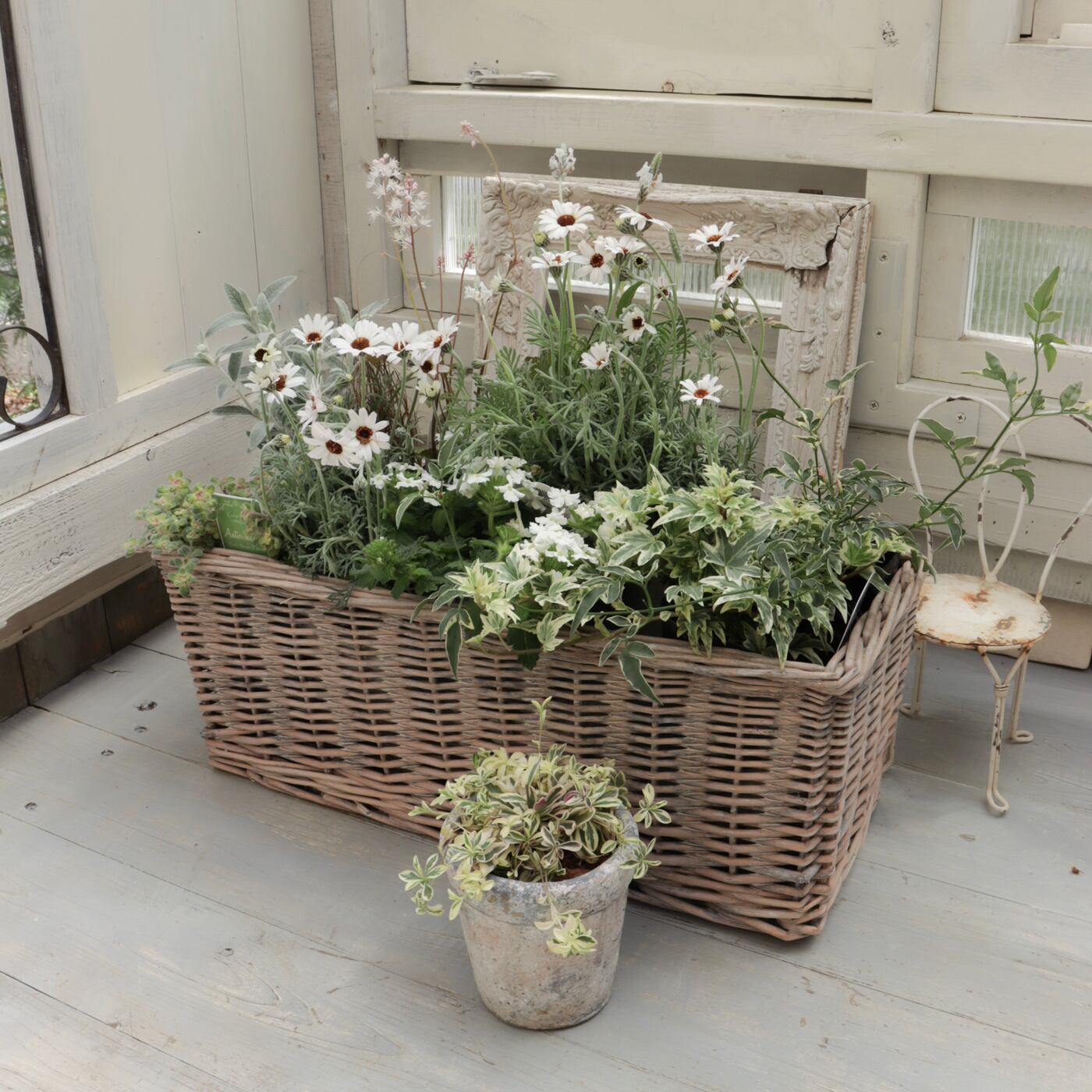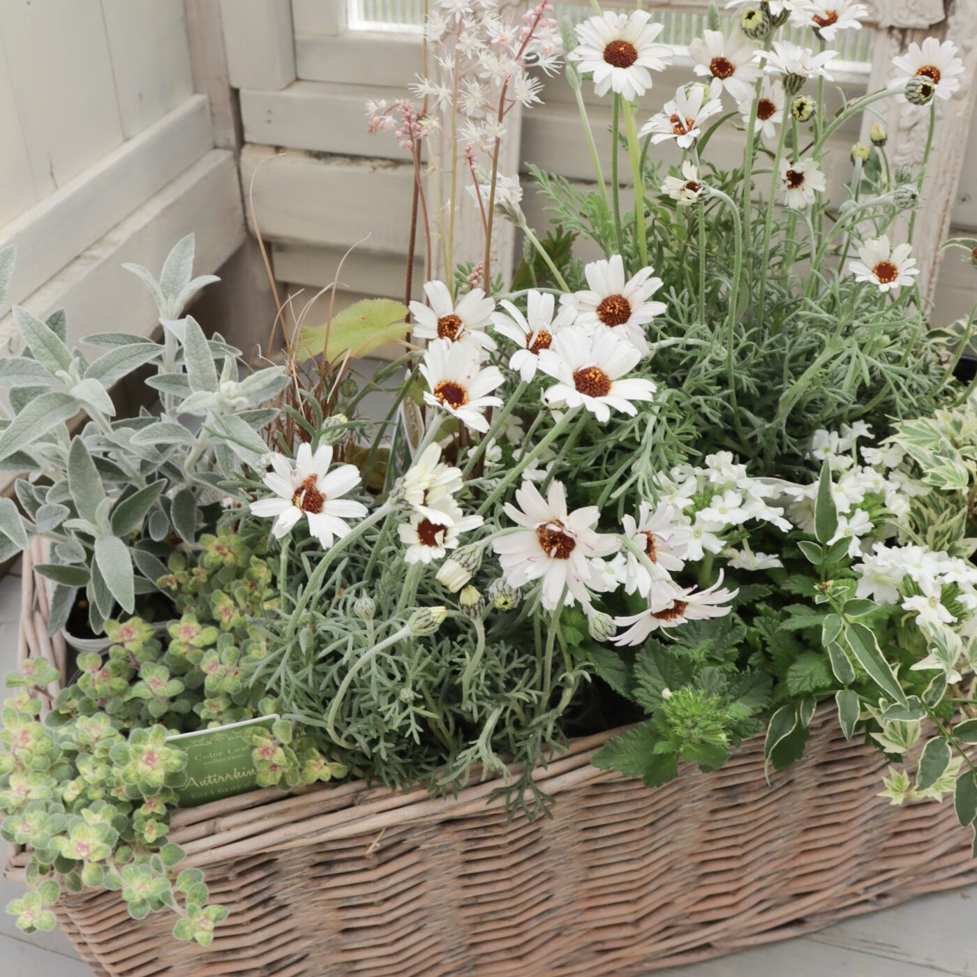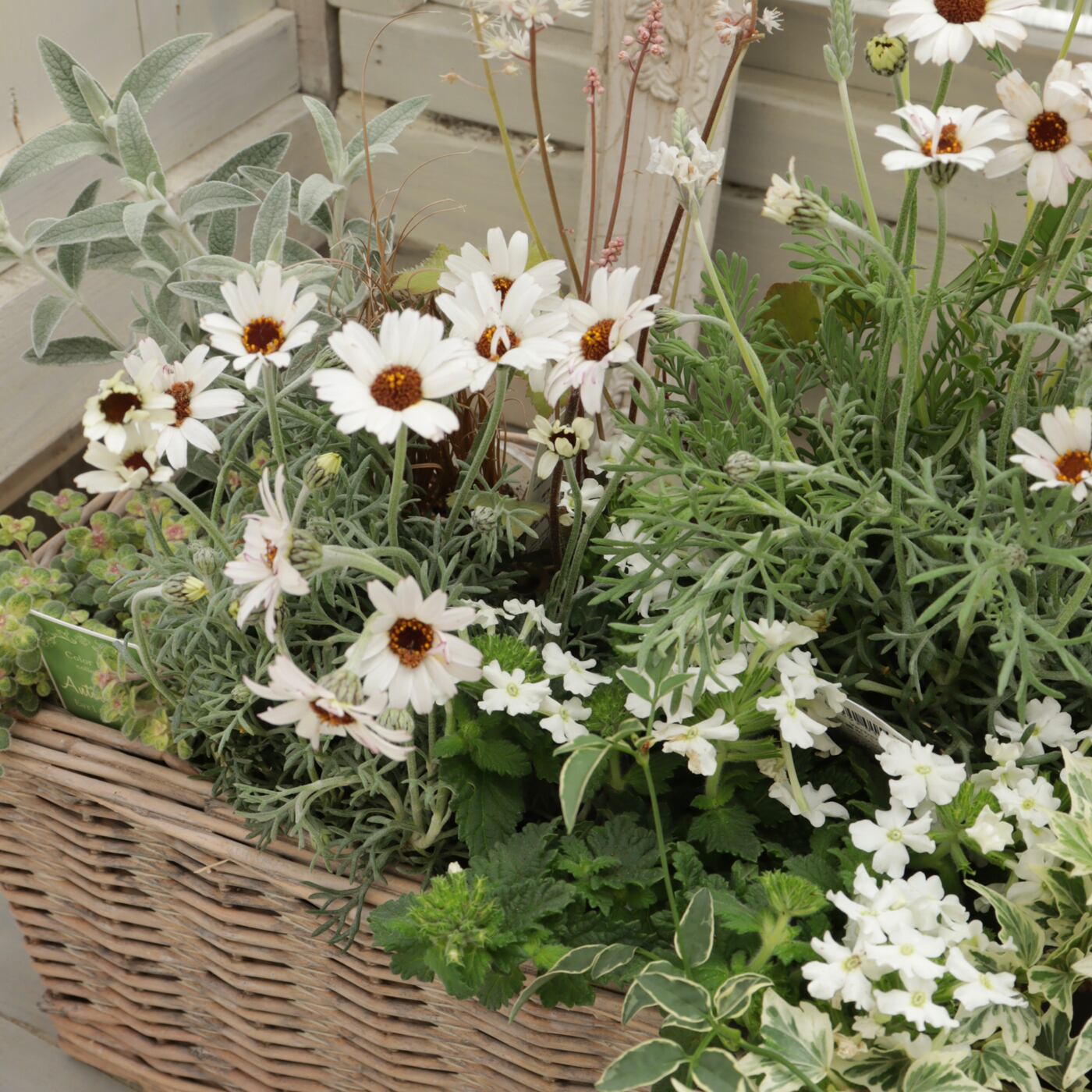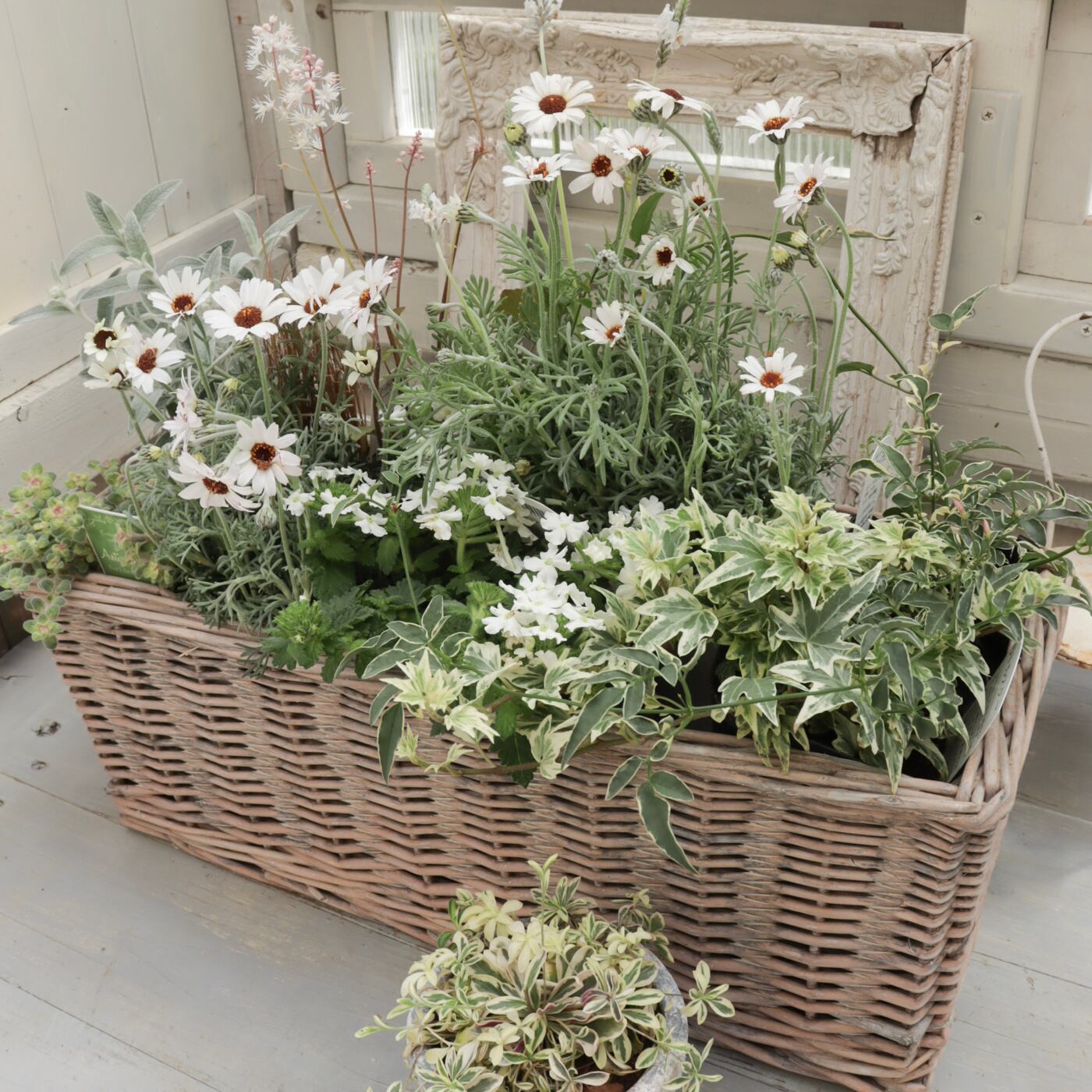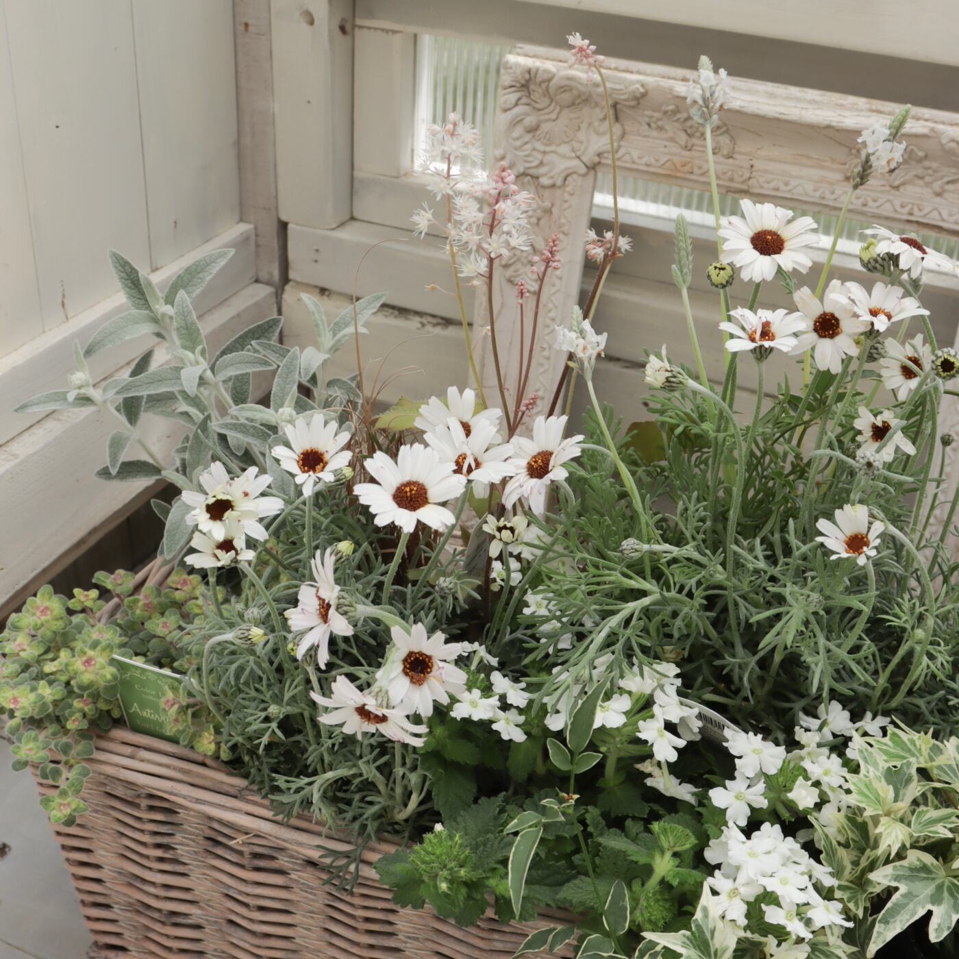 ナチュラルな白花を中心に、シルバーリーフや斑入り葉、