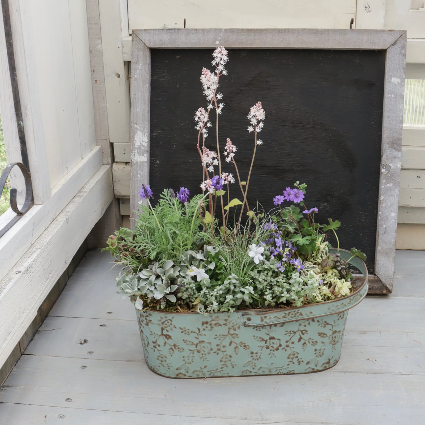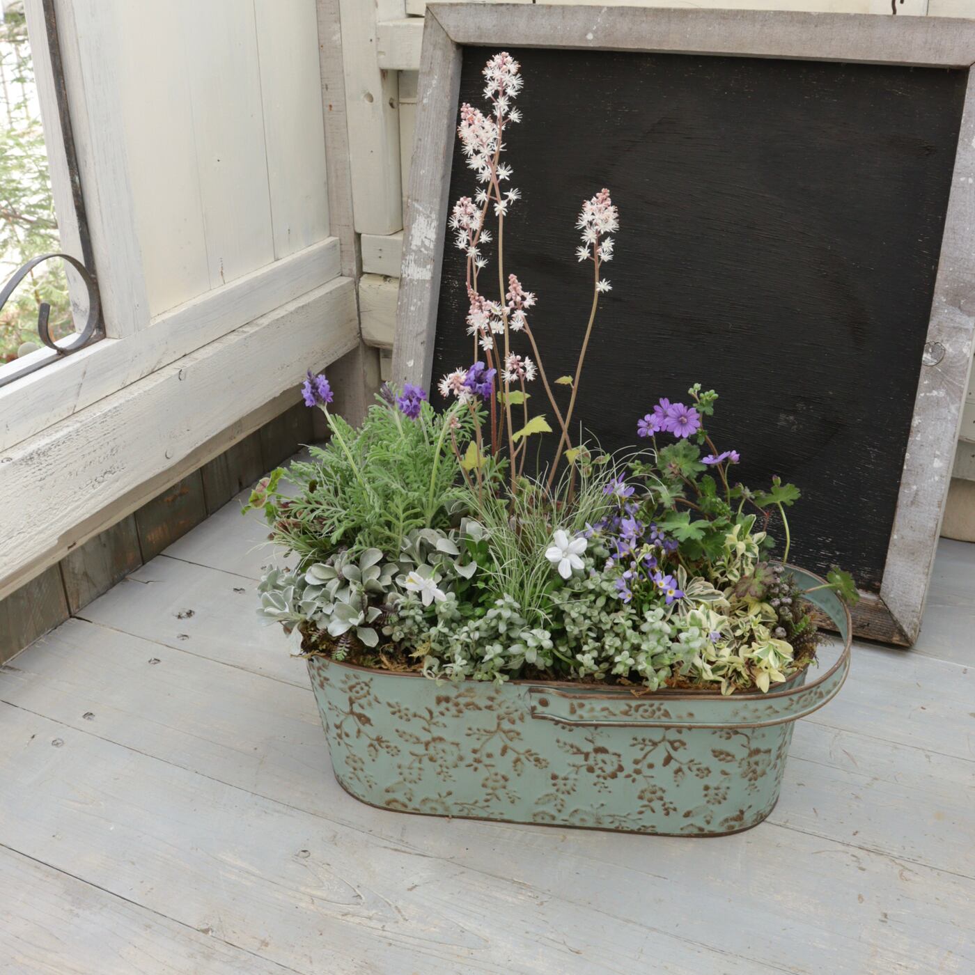 小さなお庭のような、とても自然体な寄せ植えです。