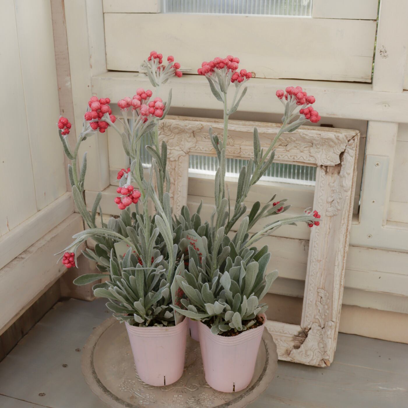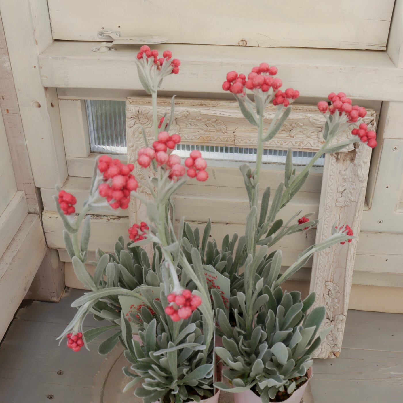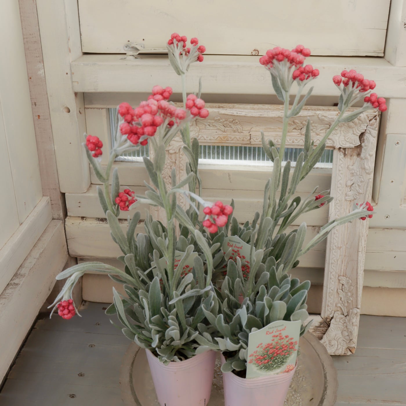 ヘリクリサム レッドジュエル|シルバーリーフと赤い花が映える常緑多年草