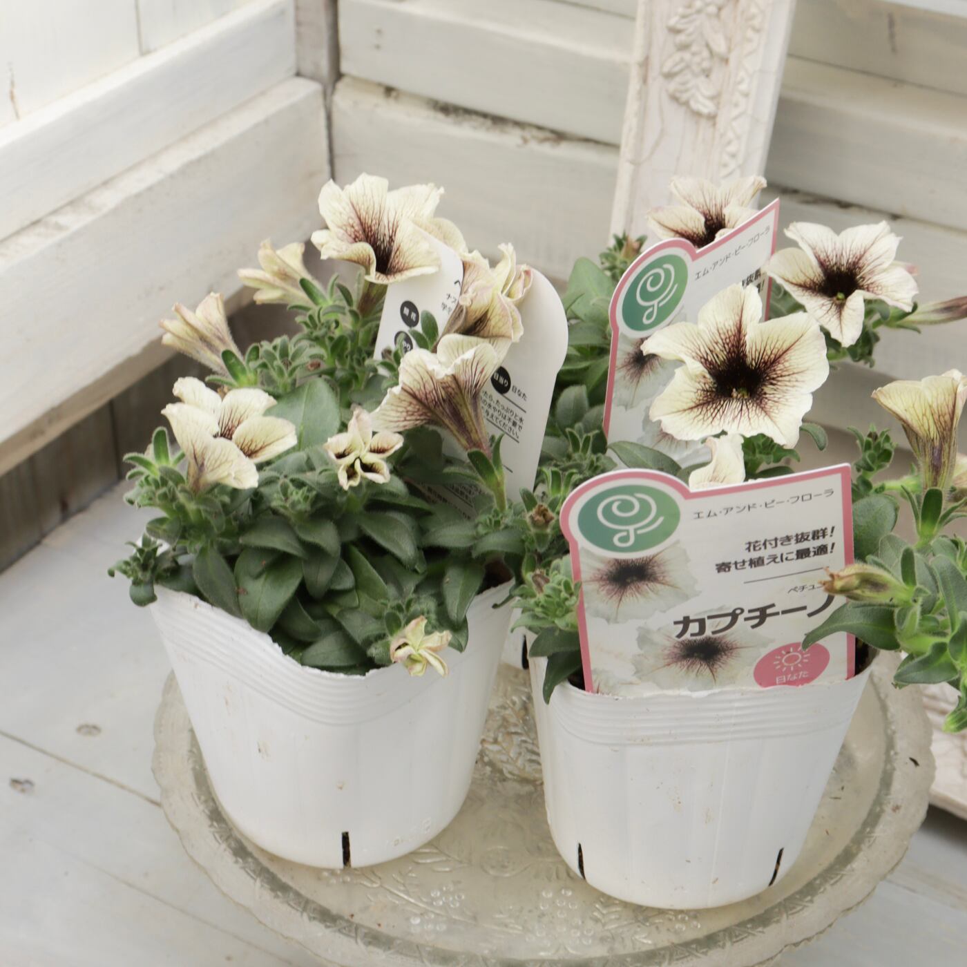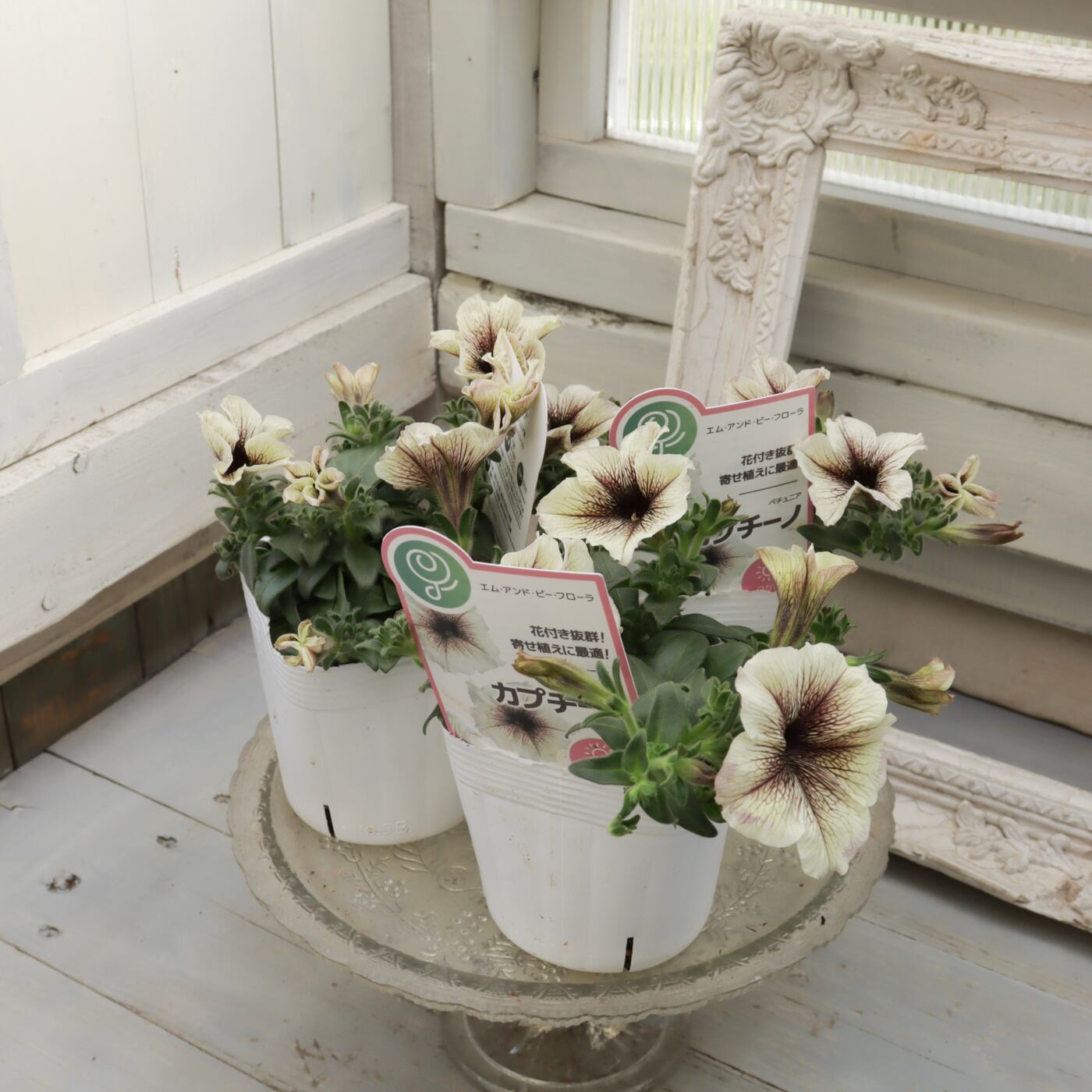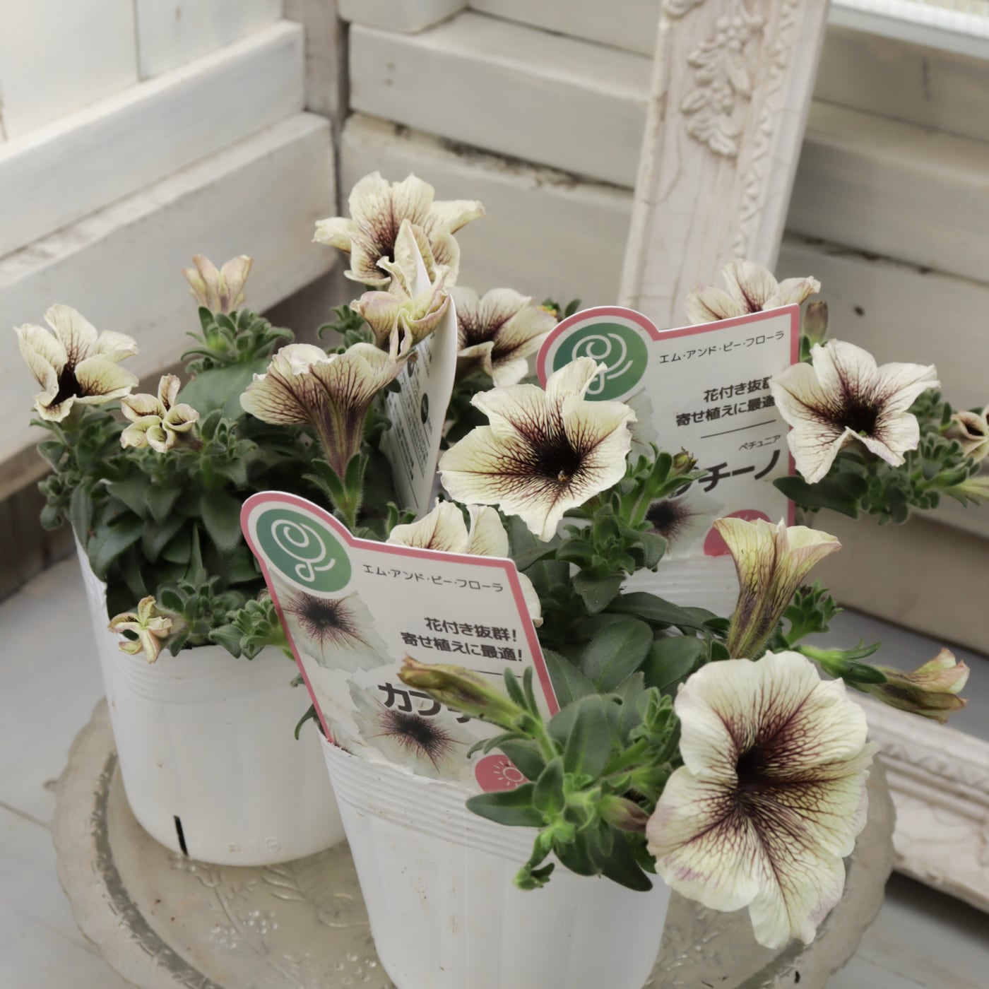 ペチュニア カプチーノ|やさしいベージュ花とシックな目色が美しい寄せ植え向き花苗
